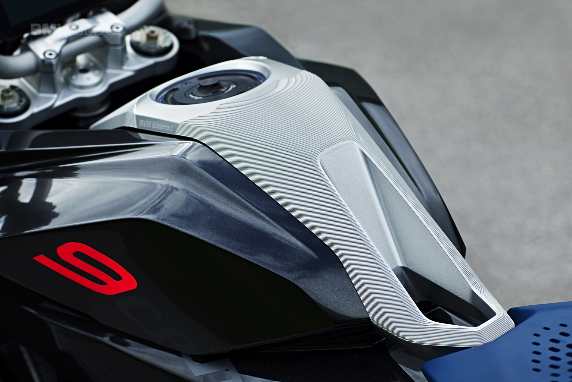 BMW also makes use of the lightweight CFRP which not only reduces the bike’s overall weight but also links the three-dimensional design of the front trim to the aluminum rear carrier.