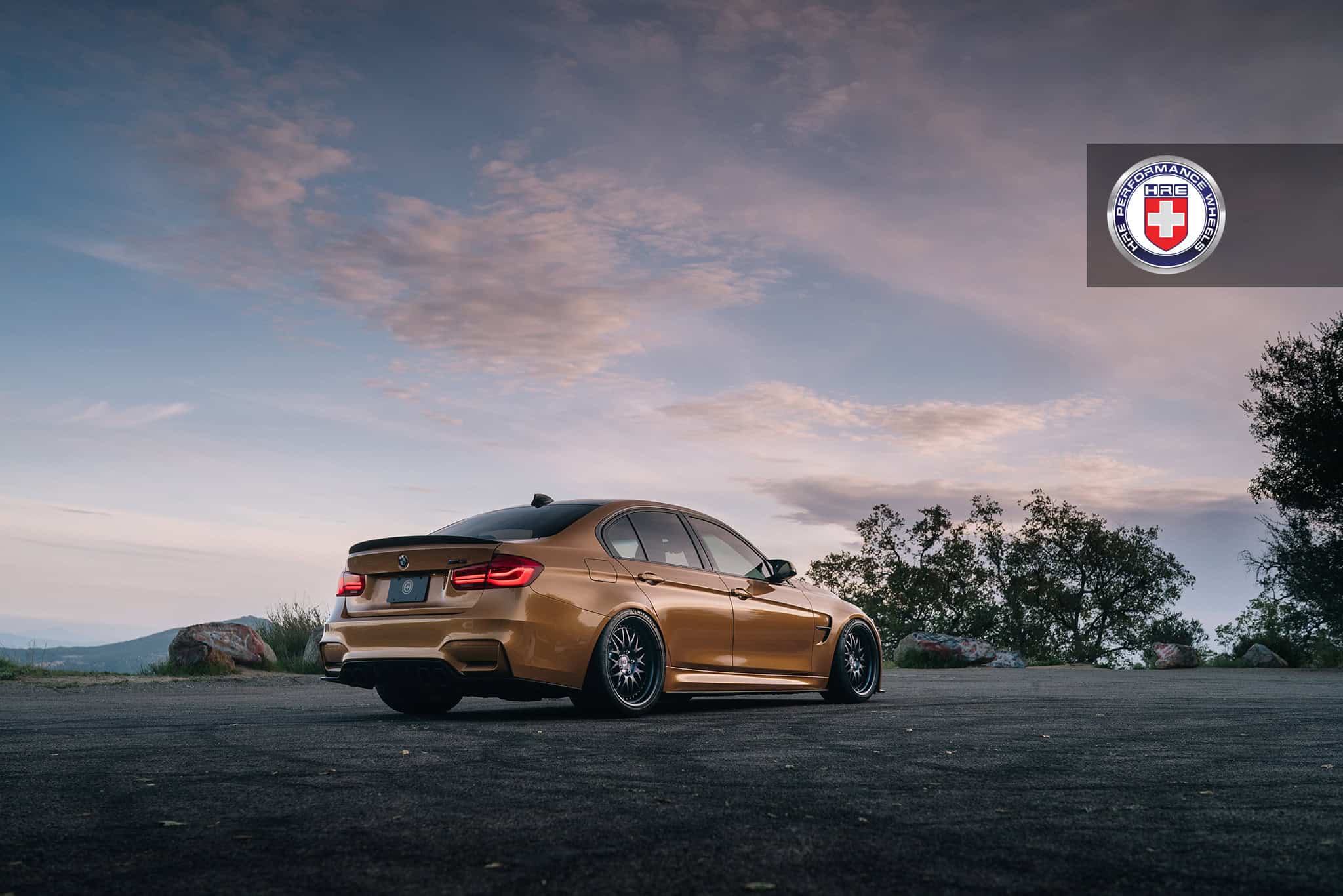 For this Sunburst Gold Metallic BMW M3, the wheels are installed in sizes of 20×8.5 and 20×10.5 in the front and rear, respectively. These wheels feature a clean and striking Satin Black finish combination.