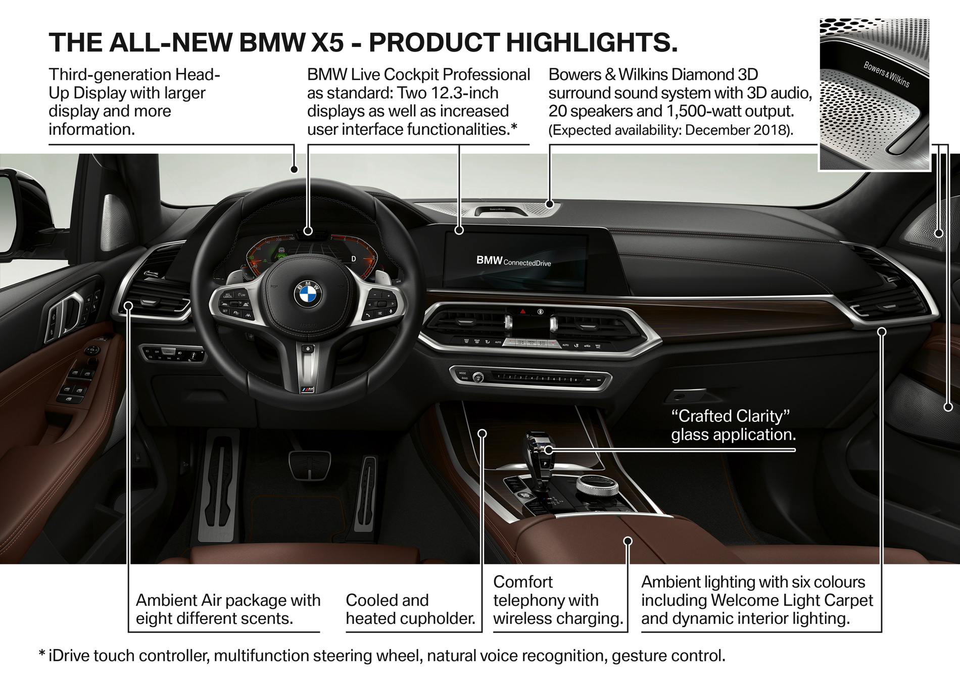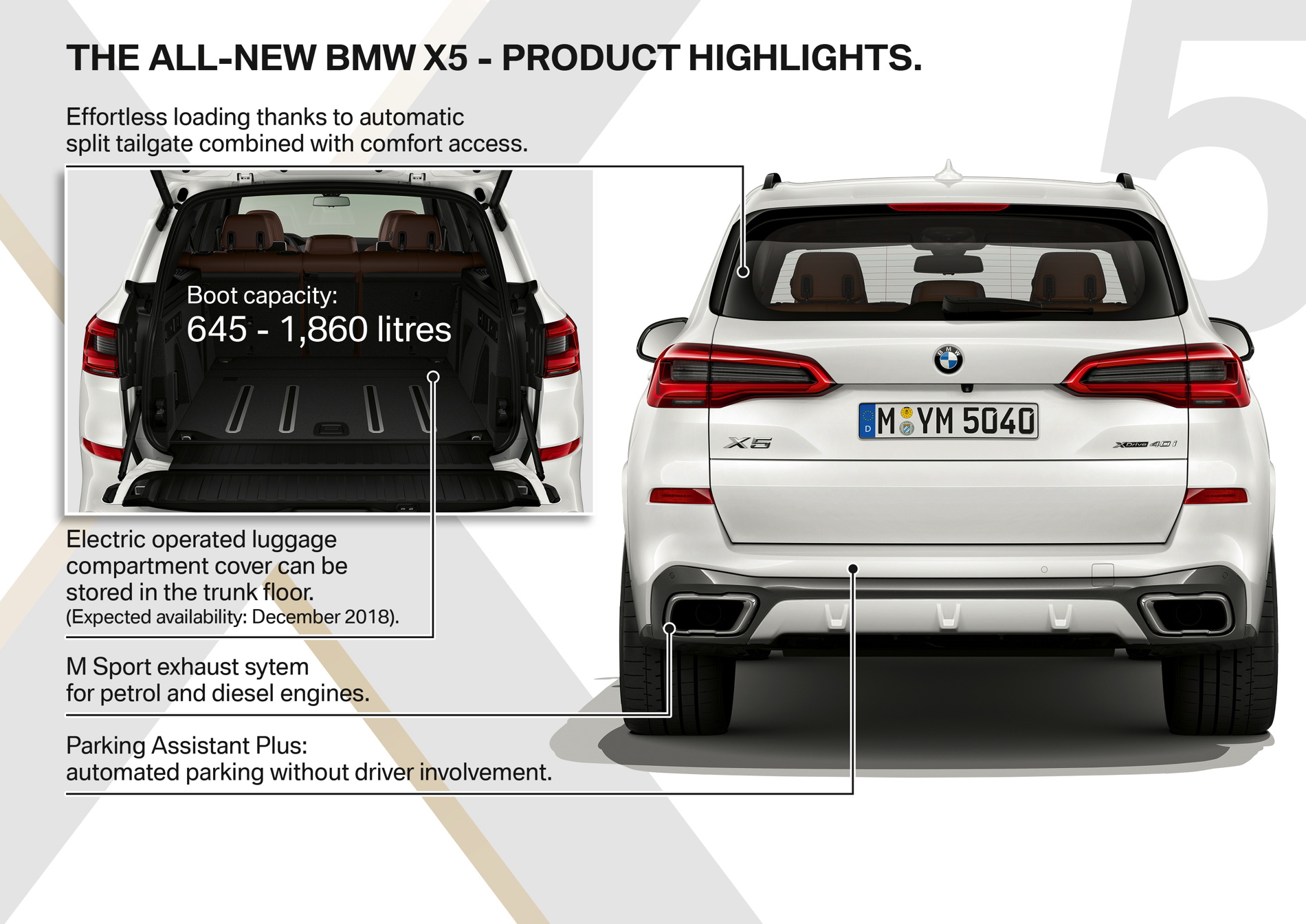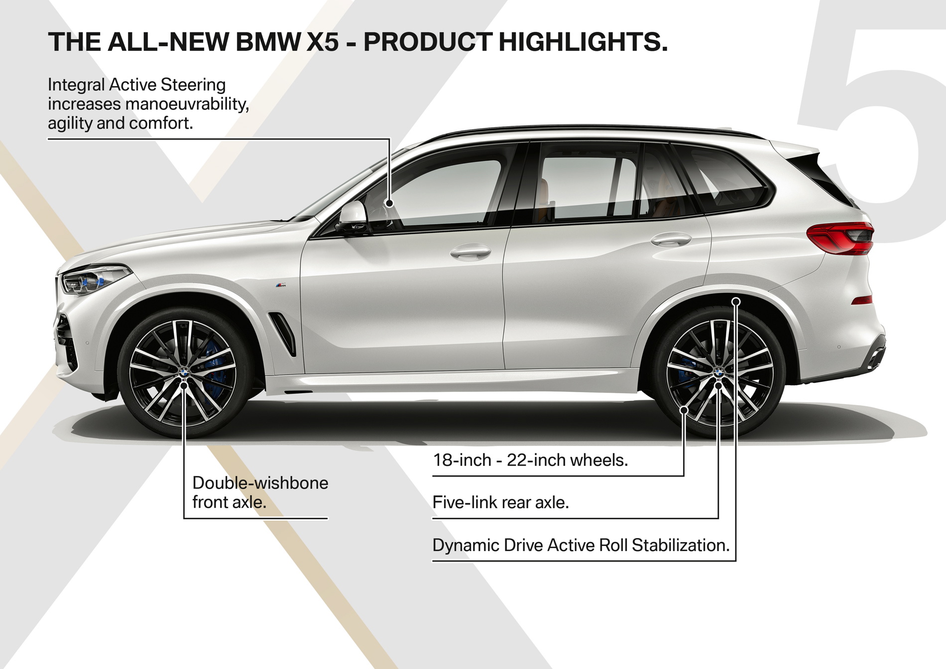 “The BMW X5 embodies the origins of the BMW X family and, in its fourth generation, sends out its most powerful message yet in terms of presence and modernity,” says Adrian van Hooydonk, Senior Vice President BMW Group Design. “It defines a new X design language – robust, clear and precise.”