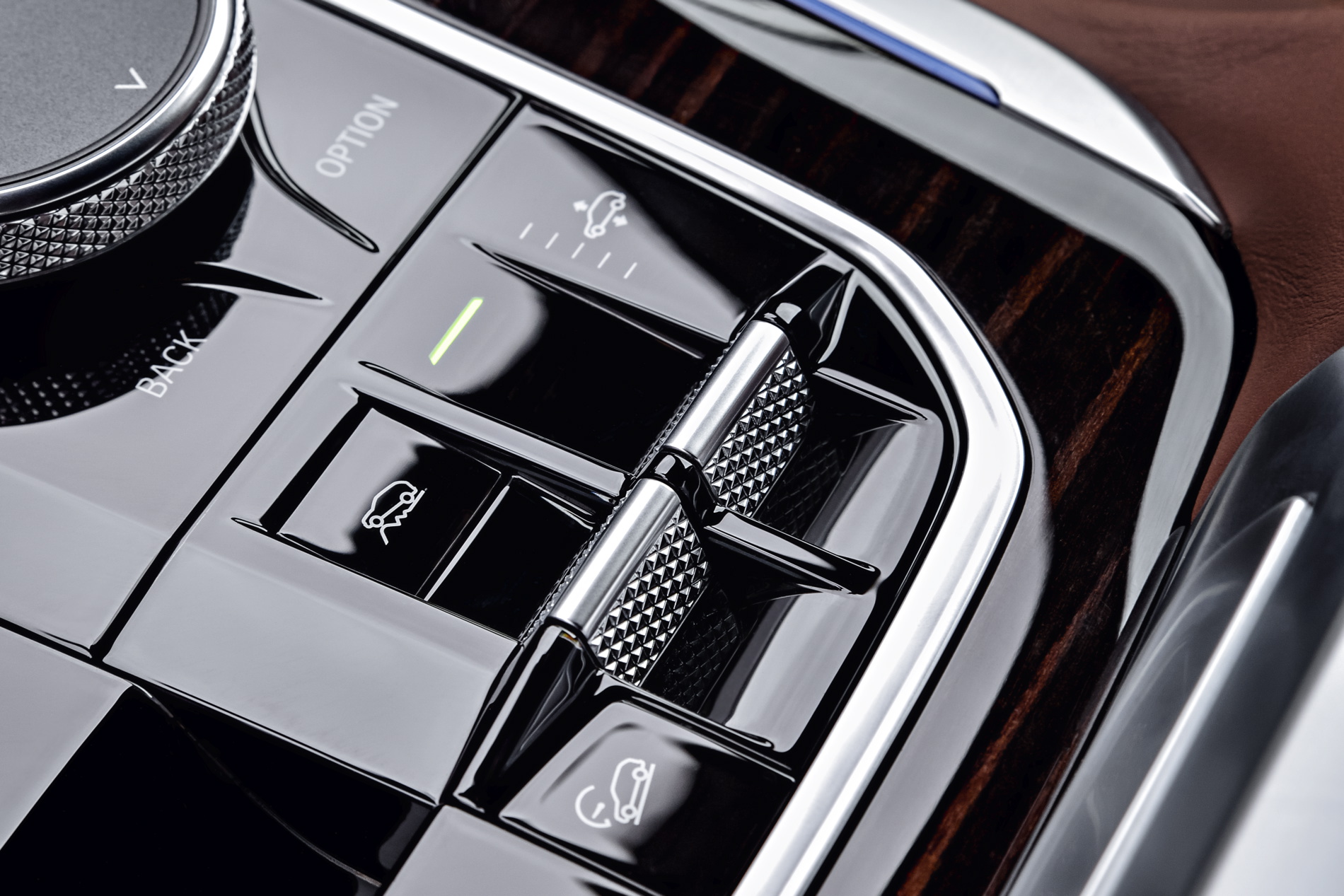 Underneath that new iDrive screen is a new HVAC button setup, which we get to see now in better detail. So, sandwiched between the two center air vents are two little screens that feature the temperature and fan speed, both of which are controlled with aluminum buttons underneath. That iDrive system is also all new, featuring an entirely new layout, new crisp graphics and many customizable screens.
