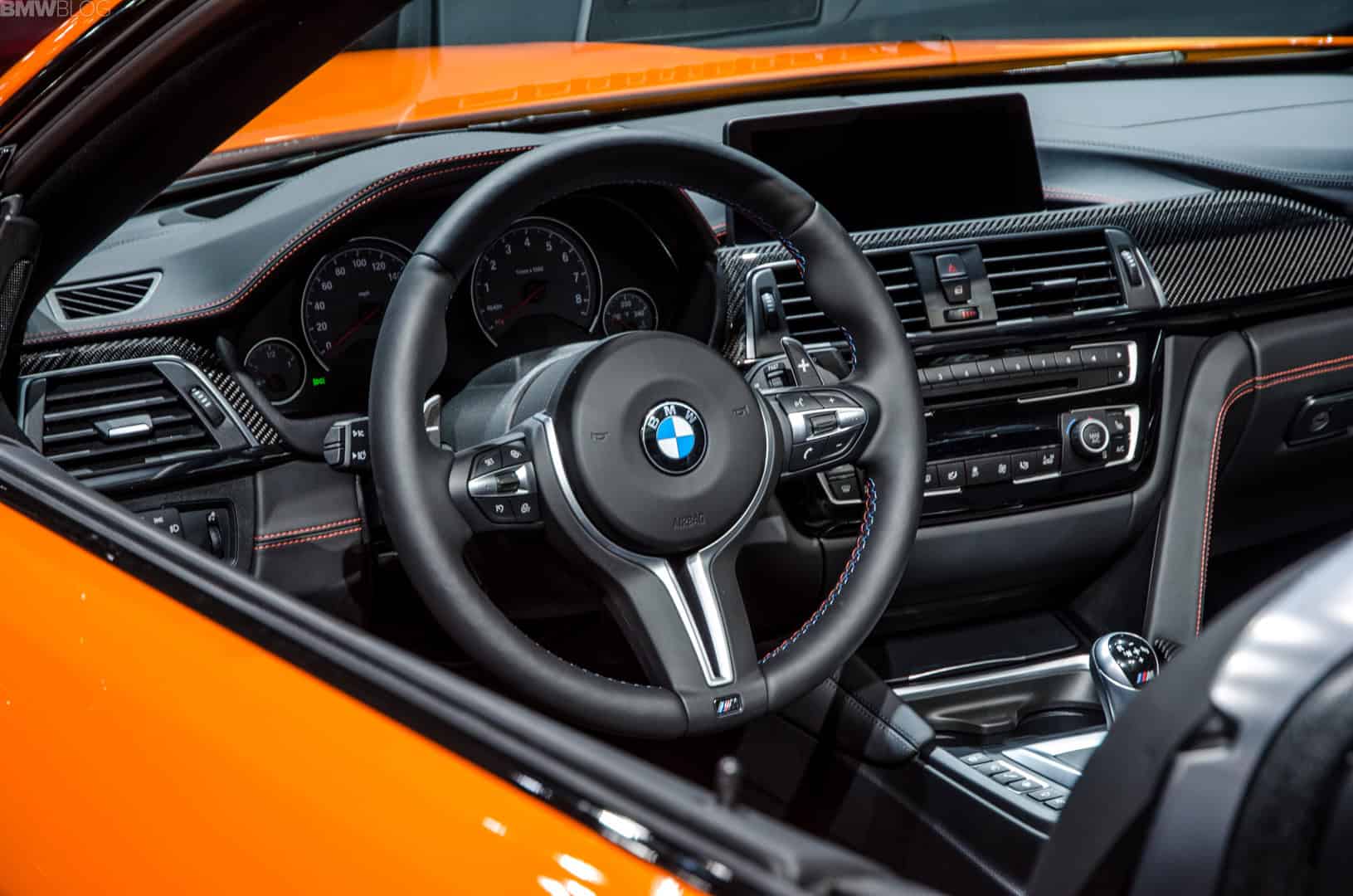 Sitting in the California desert sun with its top down, the purple M4 showed off its brownish leather interior and, the real eye-catcher, its six-speed manual transmission. Just the color scheme and six-speed stick in between the seats were enough to attract enthusiasts. However, there were also some carbon fiber goodies, gold Style 763M wheels, a lowered M Performance suspension and an M Performance exhaust. So, needless to say, there was a bit of a line of folks who wanted to drive it.