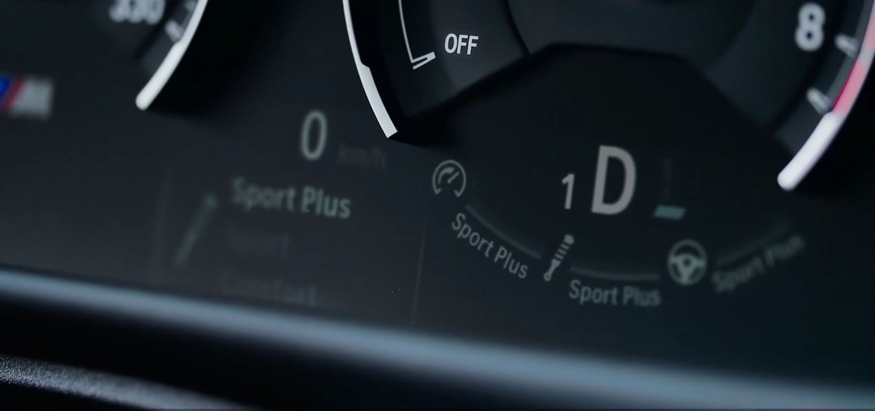 Whichever mode the driver selects is displayed in the instrument cluster. When you reached your perfect combination, the settings can be saved for later use. The driver’s individual profile is created in the iDrive system by holding down the red M1 or M2 button on the multifunction steering wheel for a few seconds until an acoustic feedback confirms that the settings have been saved. The stored profile can then be selected via the M1 and M2 buttons.