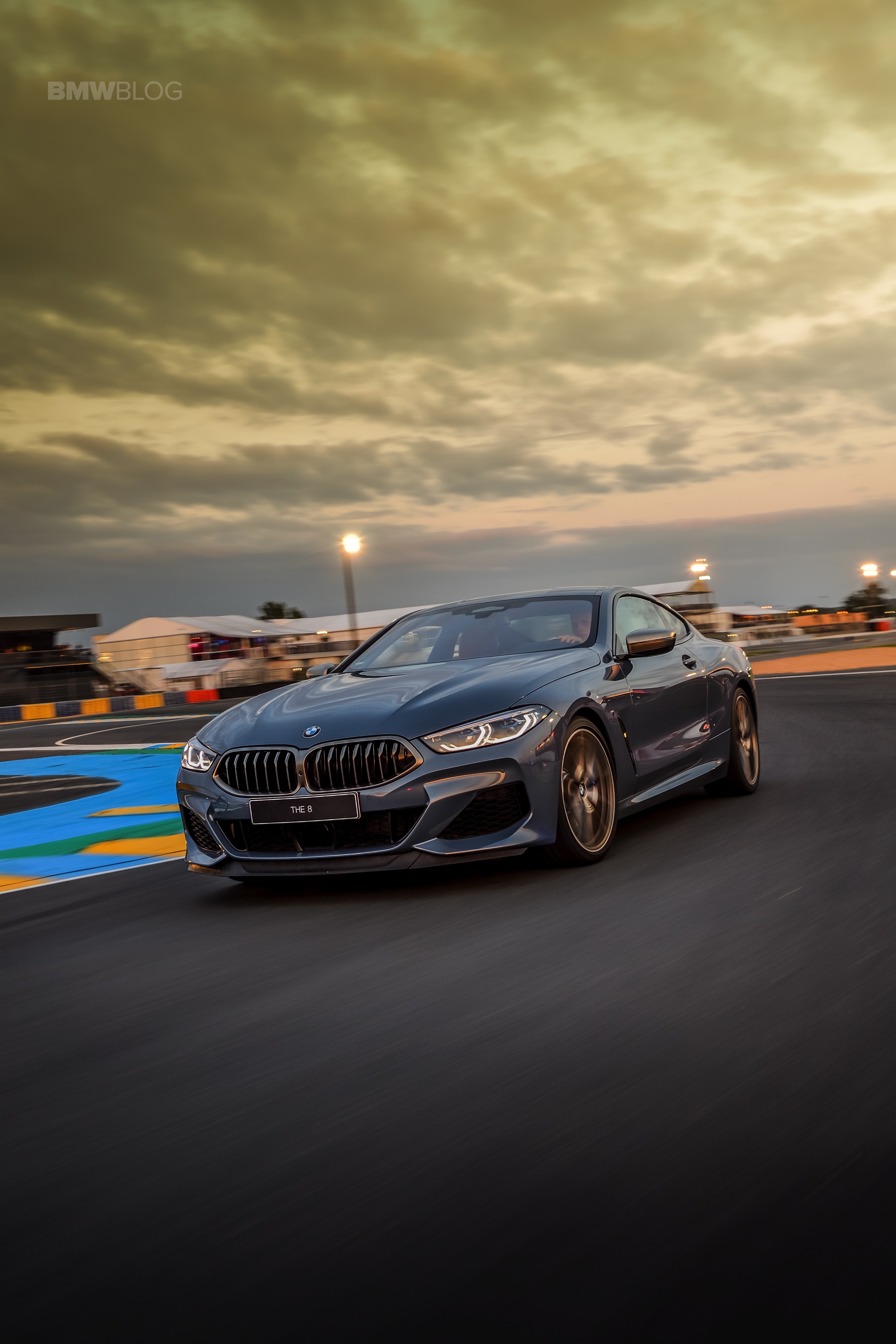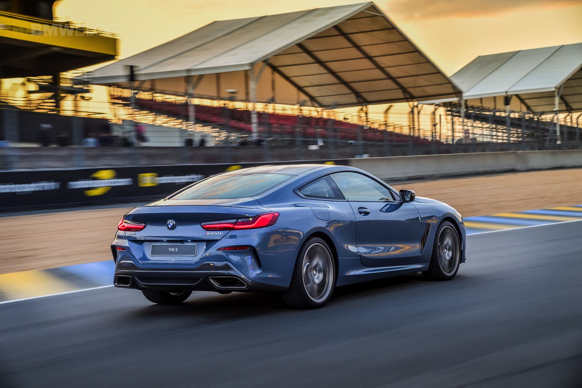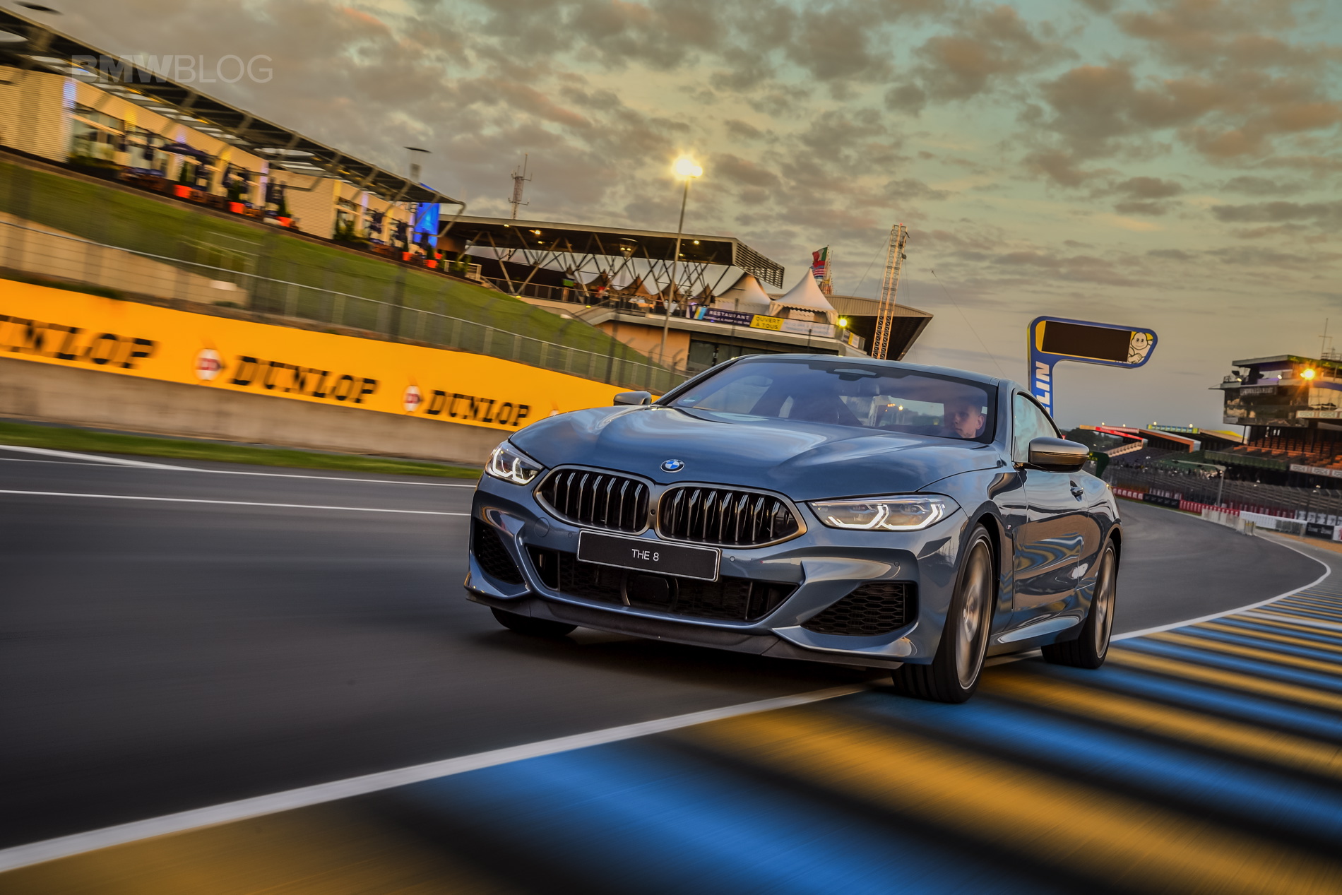 While in Le Mans for its world premiere, the new BMW 8 Series Coupe find somme time for some track laps. The car chosen for the photoshoot was the M850i in the new Barcelona Blue which is quite stunning in person. While there are two models at launch – the 840d being the other one – the BMW M850i is the one you want to hear about with its newly revised 4.4 liter twin-turbocharged V8 engine. That engine makes 523 hp and 553 lb-ft of torque and is mated to an eight-speed automatic, which sends power to a newly revised xDrive all-wheel drive system and a rear-wheel steer system.
