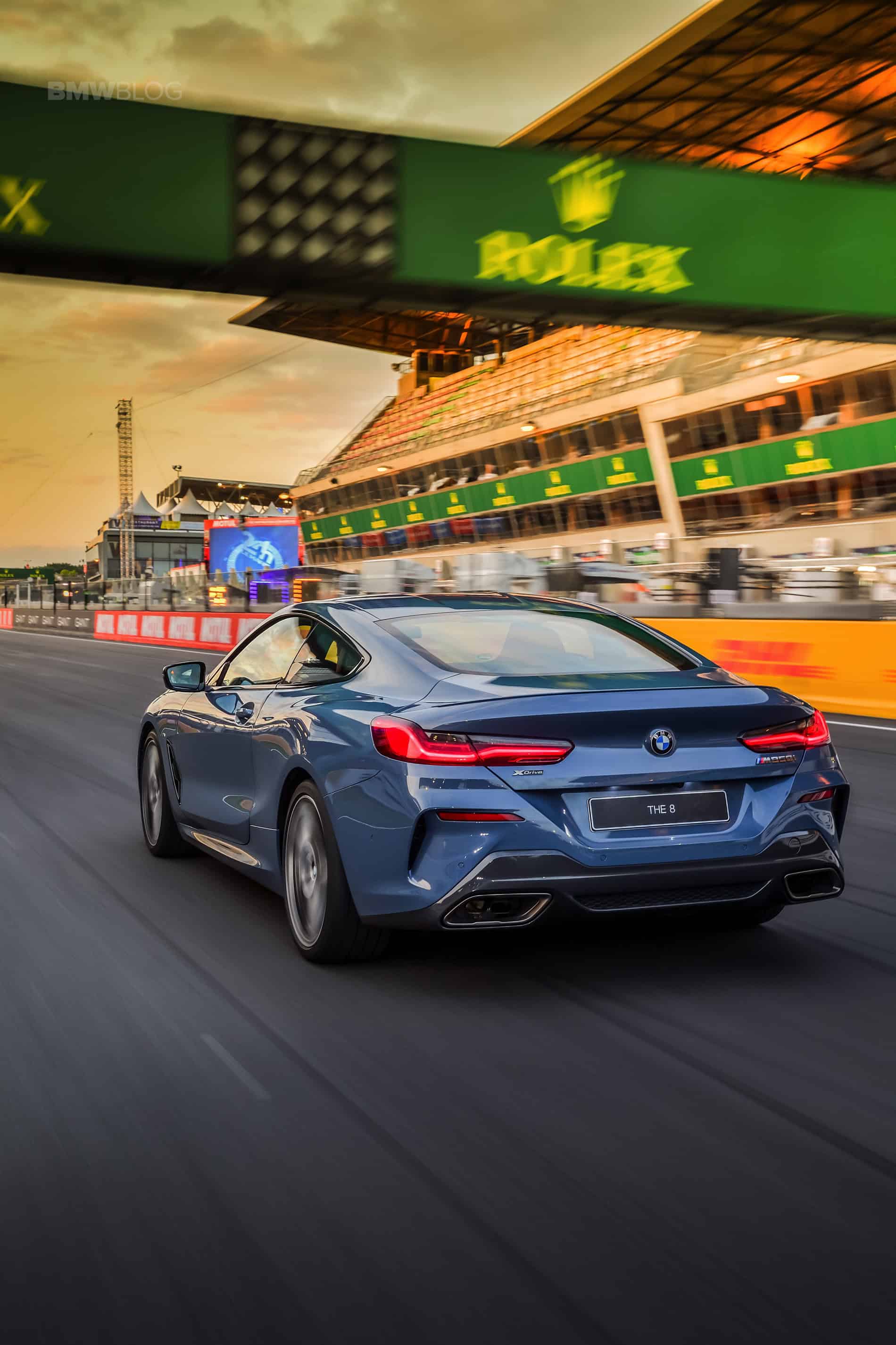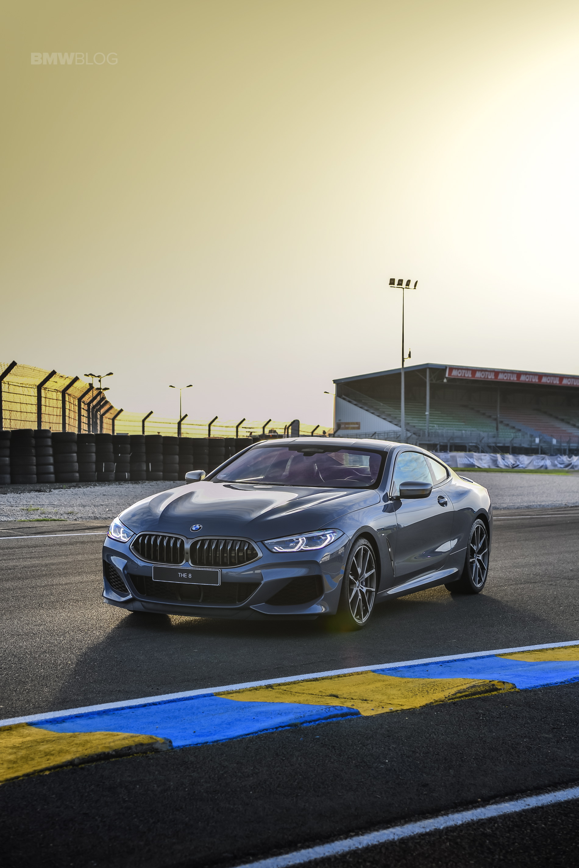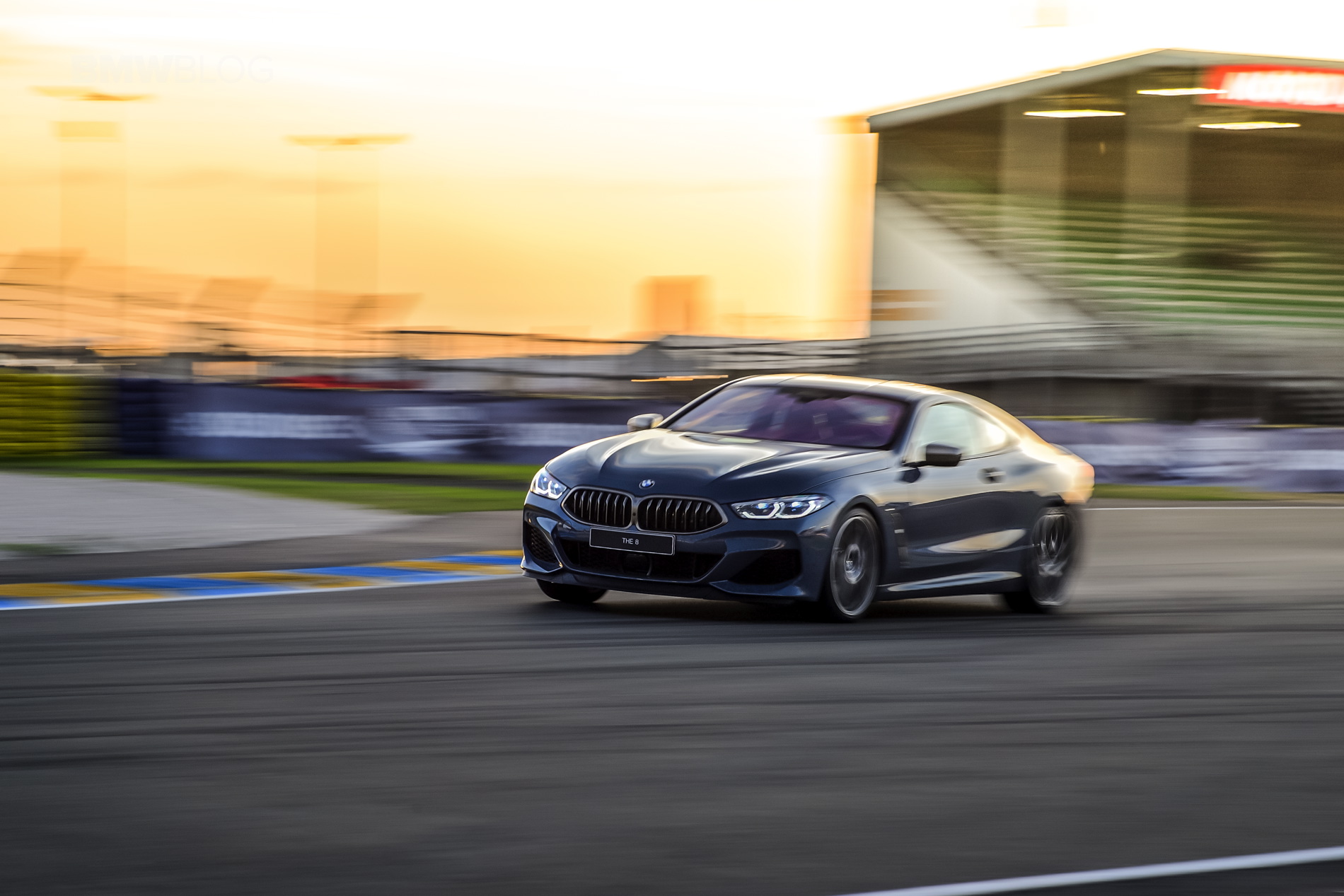 While in Le Mans for its world premiere, the new BMW 8 Series Coupe find somme time for some track laps. The car chosen for the photoshoot was the M850i in the new Barcelona Blue which is quite stunning in person. While there are two models at launch – the 840d being the other one – the BMW M850i is the one you want to hear about with its newly revised 4.4 liter twin-turbocharged V8 engine. That engine makes 523 hp and 553 lb-ft of torque and is mated to an eight-speed automatic, which sends power to a newly revised xDrive all-wheel drive system and a rear-wheel steer system.