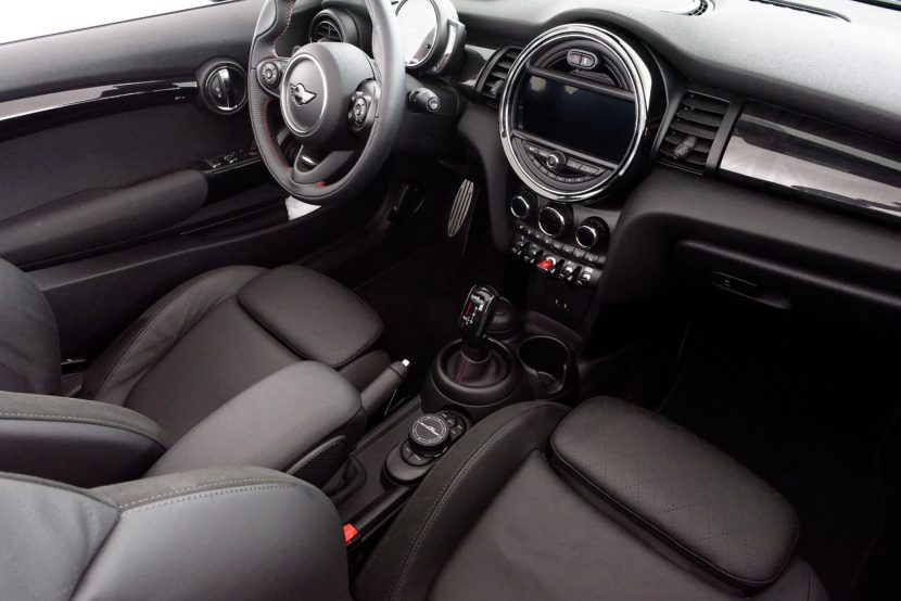 Inside, we can find the AC Schnitzer aluminium cover “Black Line” for the iDrive system controller, the aluminium gear knob, the aluminium pedal set and footrest as well as the velours floor mats.