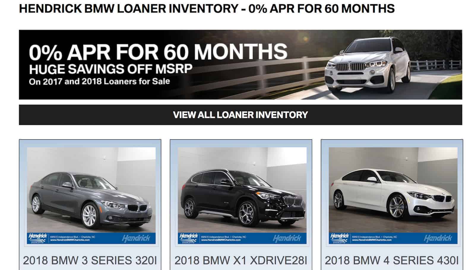 To showcase some of those deals, Hendrick BMW put together a page dedicated to those loaners.