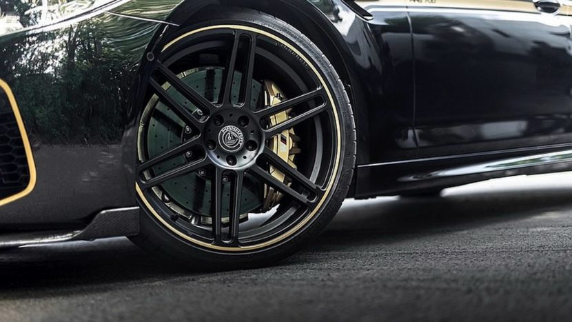 The MH5 runs the 21“ version of the well known MANHART Concave One aluminum wheels in Silk-Matte Black to fit the black bodycolour.