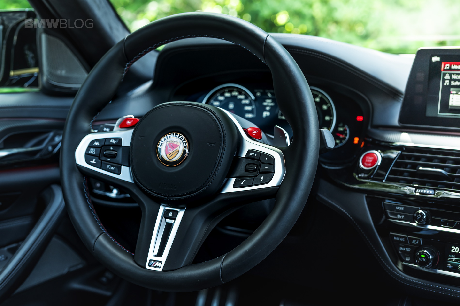Interior changes are fairly subtle. Driver and co driver are greeted by new floor mats with MANHART embroidery as well as the obligatory MANHART logo on the steering wheel. „We’re still working out further changes regarding the interior design“, states Christoph Erfurt, CEO of MANHART.