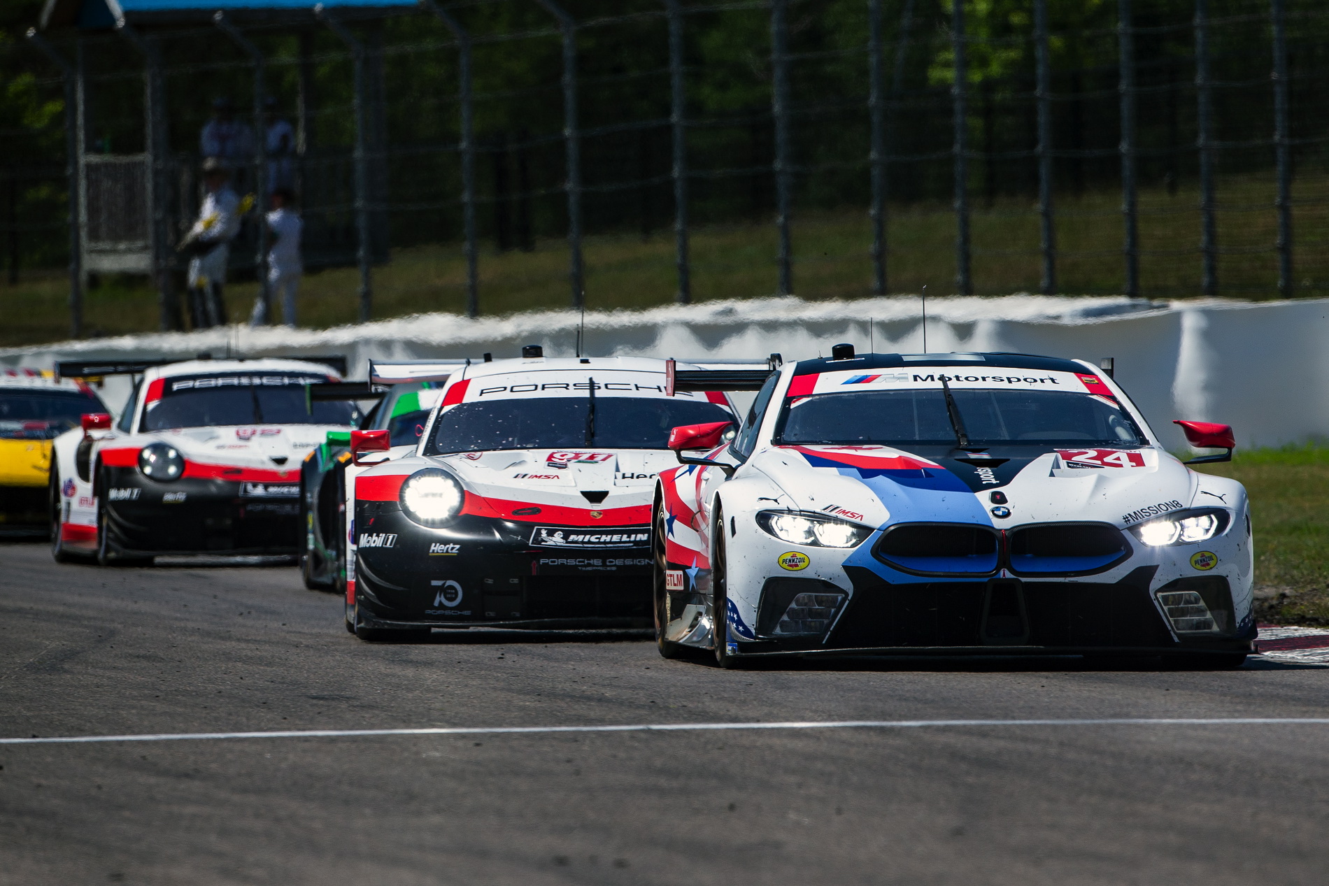 bookended the race’s halfway point with Sims having cycled to first and Edwards close behind in second. Unfortunately, contact with the No. 911 Porsche just two laps after the green flag waved on lap 59 forced the No. 24 M8 GTE to the pits with right rear suspension damage. The car was unable to rejoin the race, retiring after 61 laps completed.