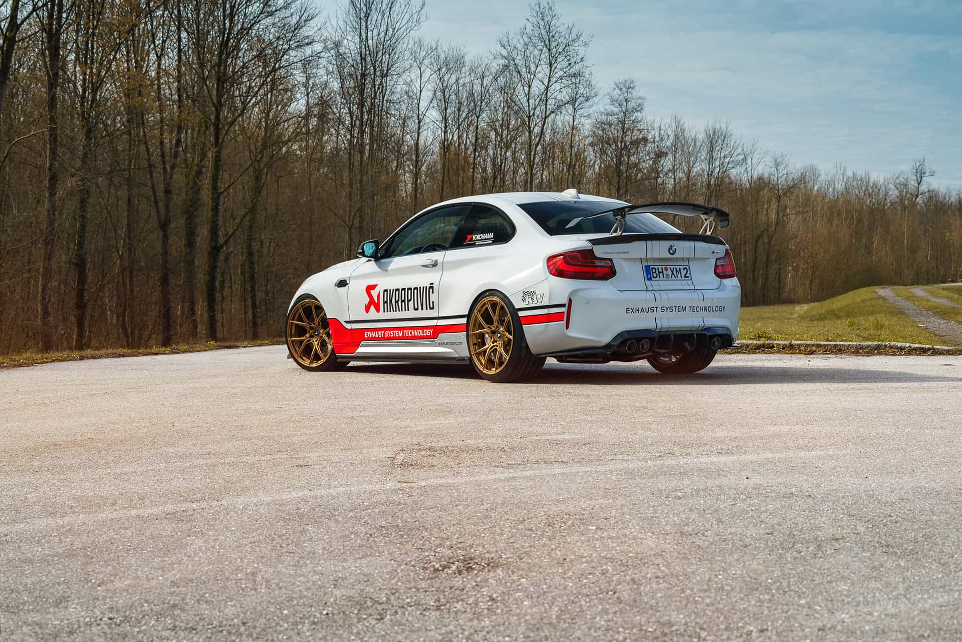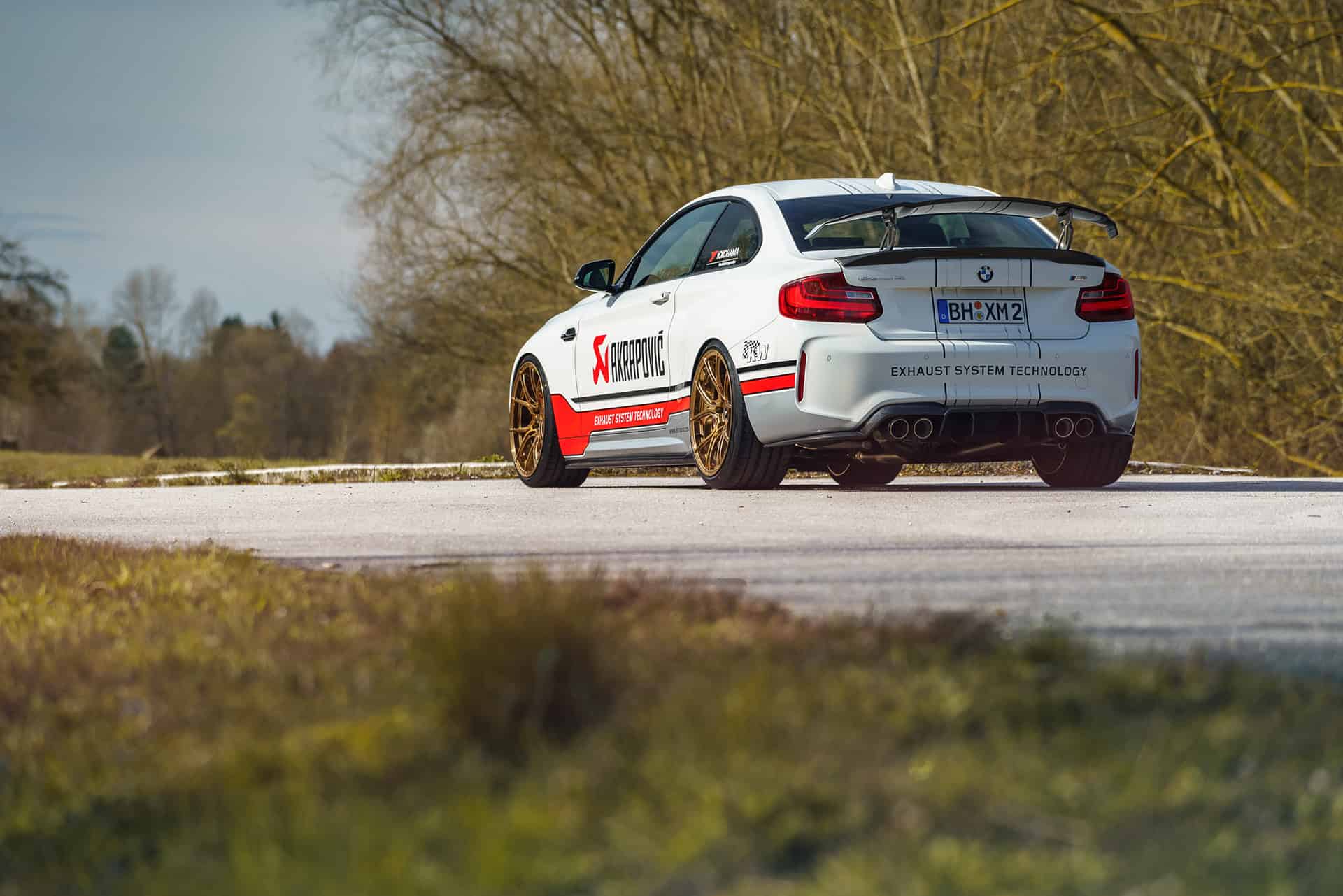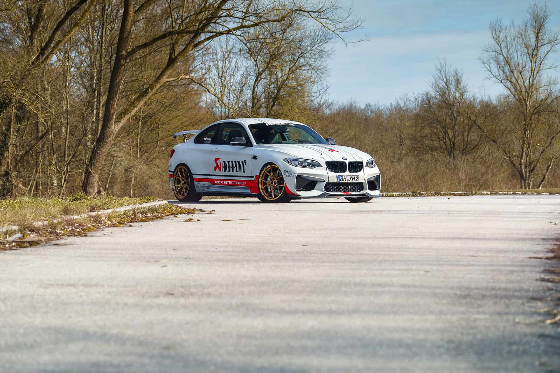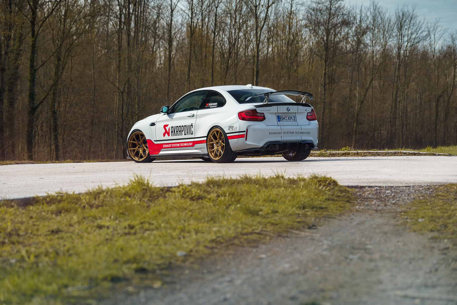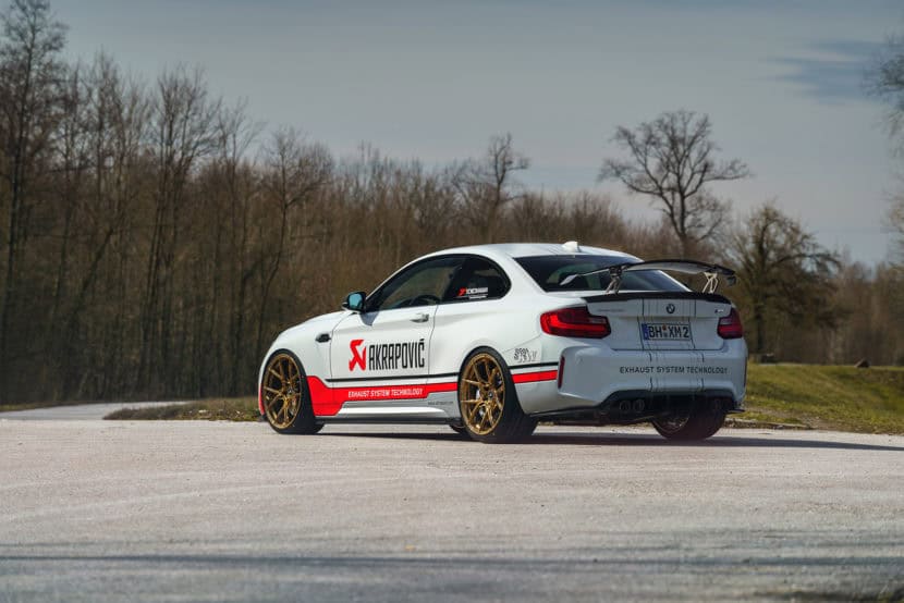 This particular M2 Coupe features a series of aero upgrades from Vorsteiner, including a racing wing on the boot lid and various carbon fiber parts throughout the exterior. The wheels come courtesy of 1221 Wheels and are painted in a gold color. Judging by the large Akrapovic decal on the sides of the M2, it’s fair to assume that the Slovenian exhaust maker was responsible for improving the sound of the sporty coupe.