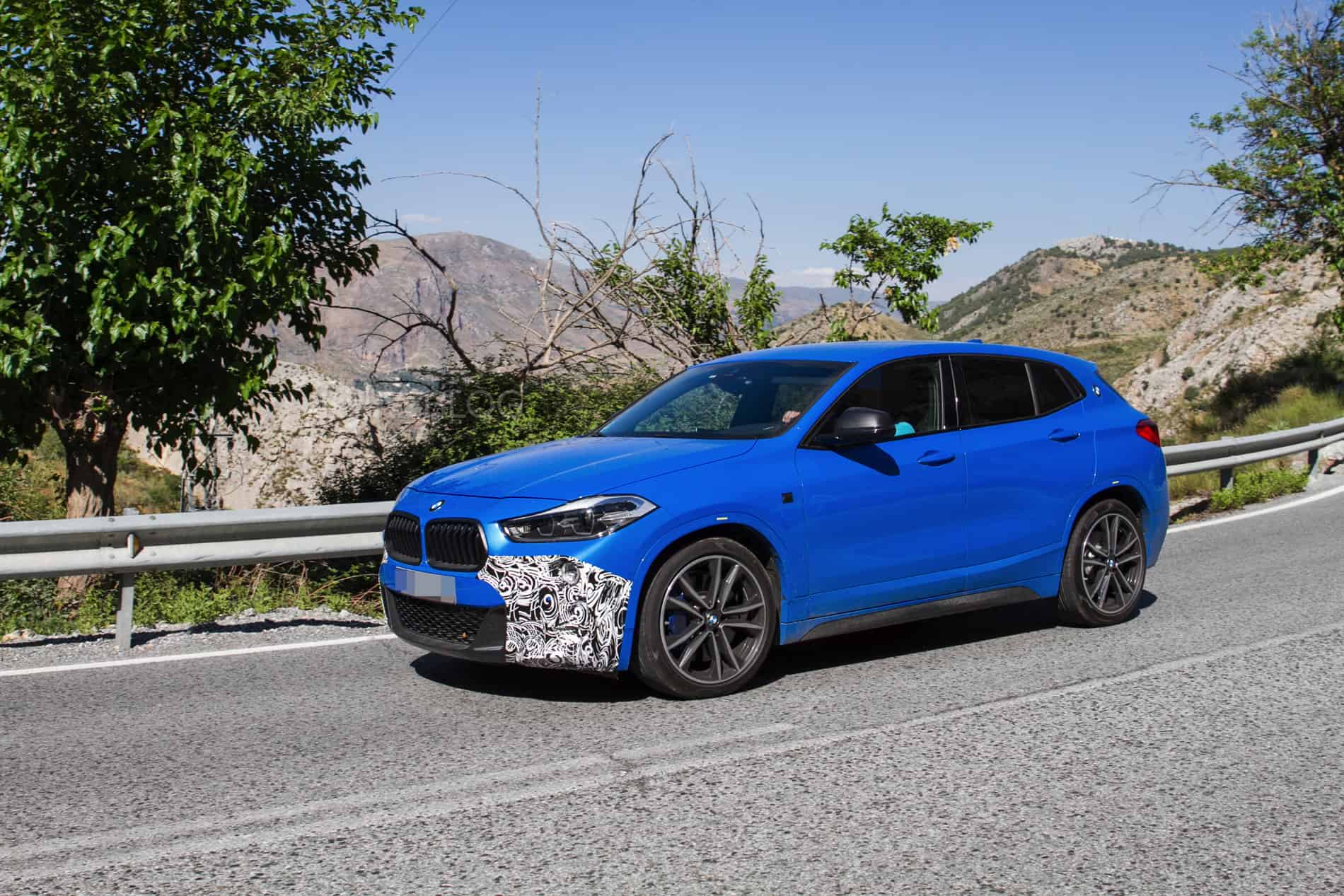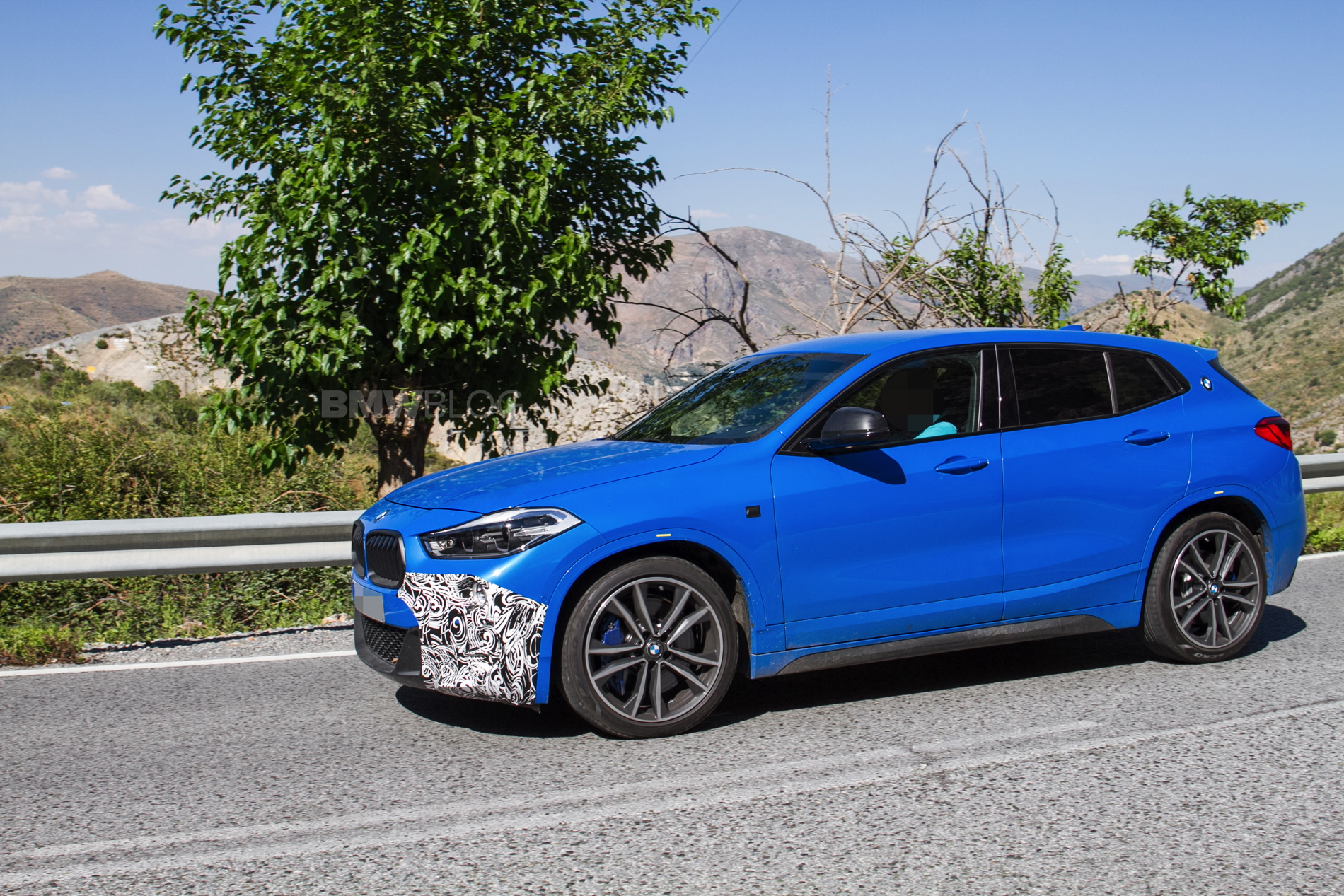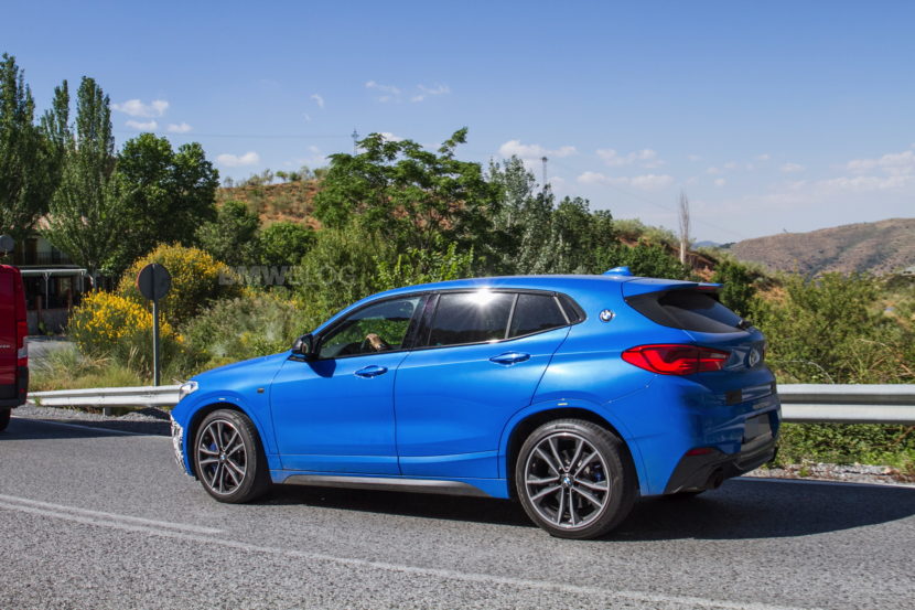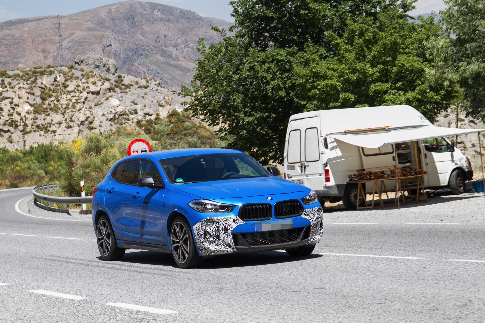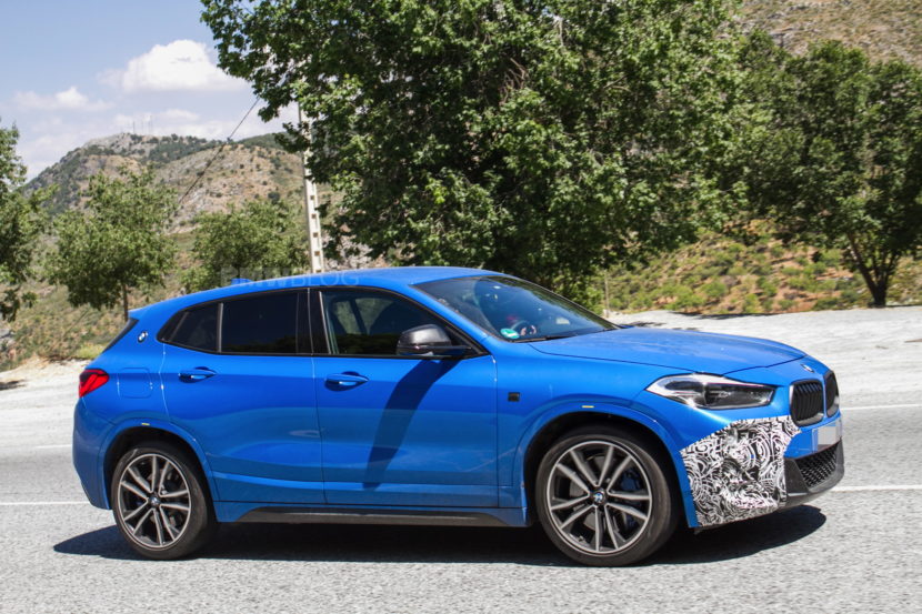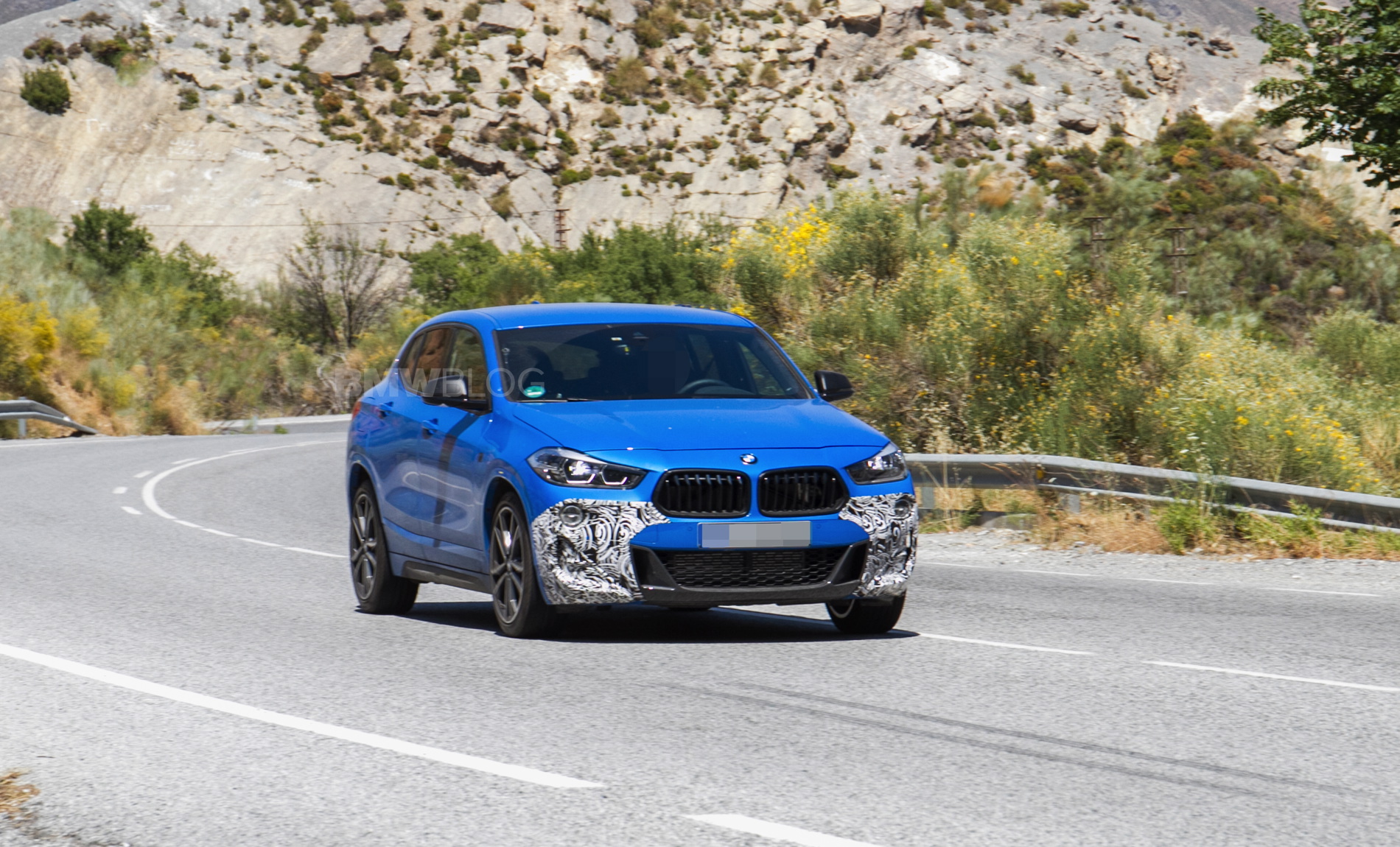 An X2 M35i prototype was just spotted in Spain, wearing little camouflage and giving us a nearly complete look of its design. We see the X2 with a sportier looking front fascia, dual exhausts with bigger pipes and larger wheels, all of which make this X2 seem like an M Performance model. The larger blue brake calipers are also indicative or a sportier model but the fact that the front brakes seem to sport two-piston calipers, it seems to be an actual performance model, rather than just an X2 with an M Sport package.