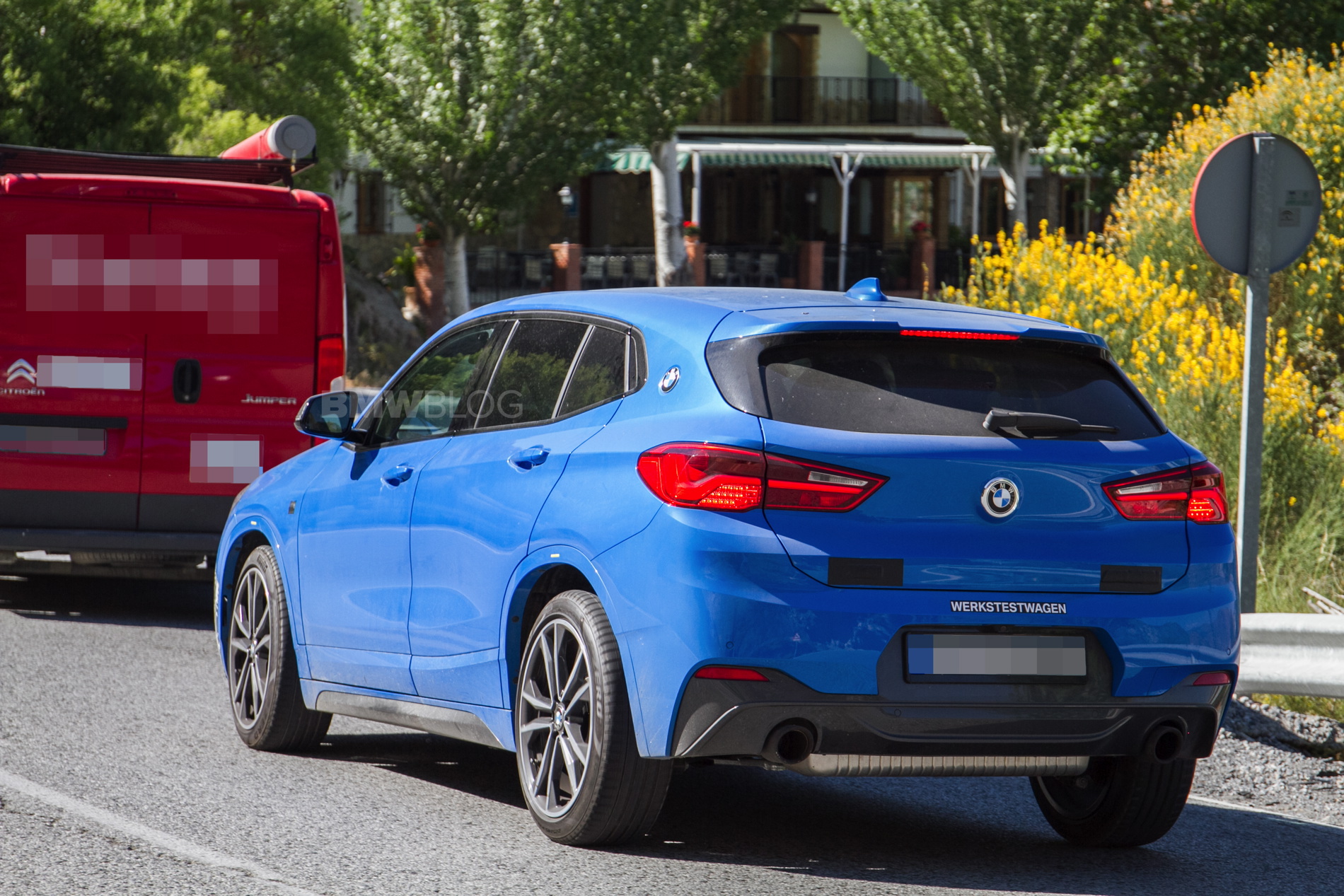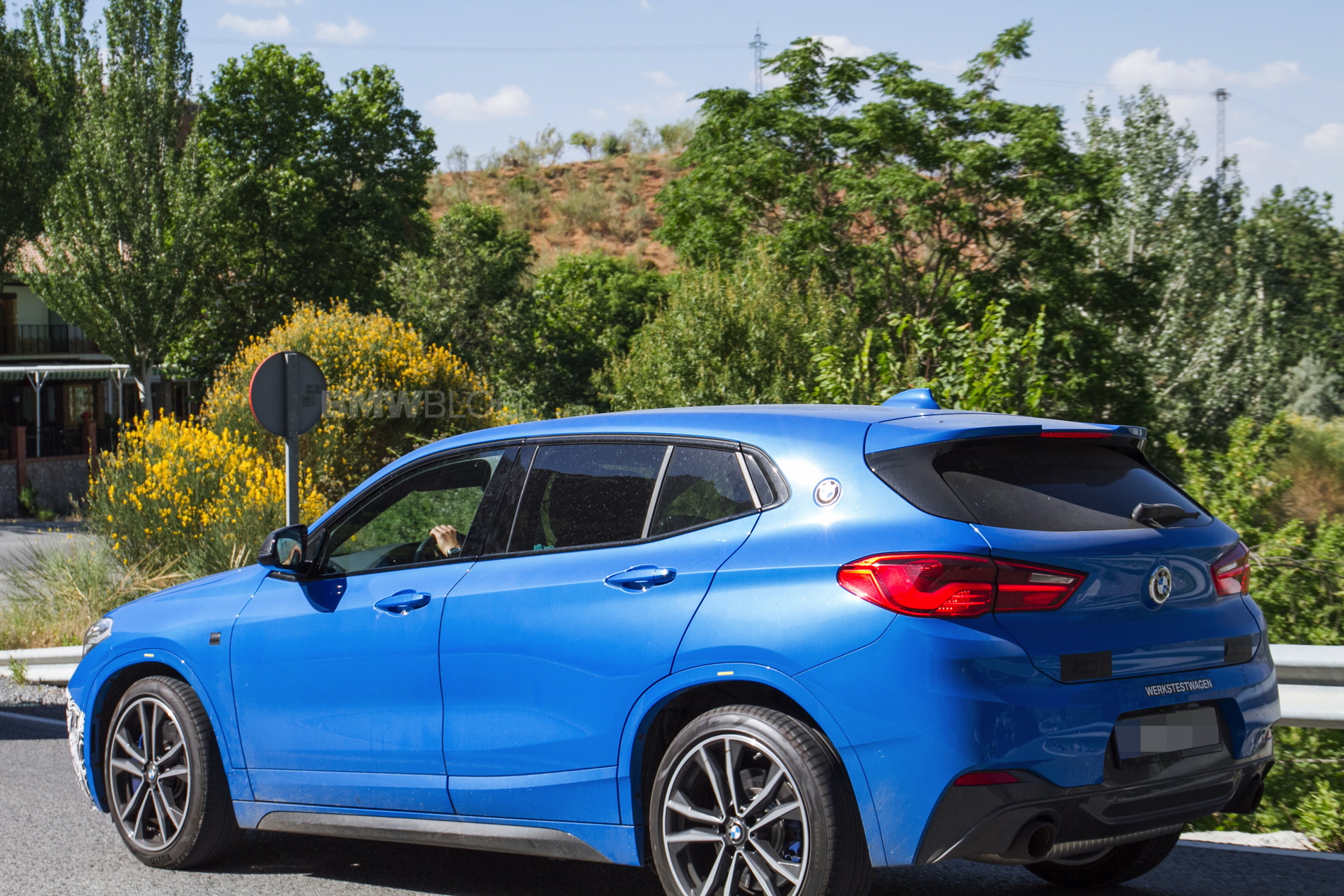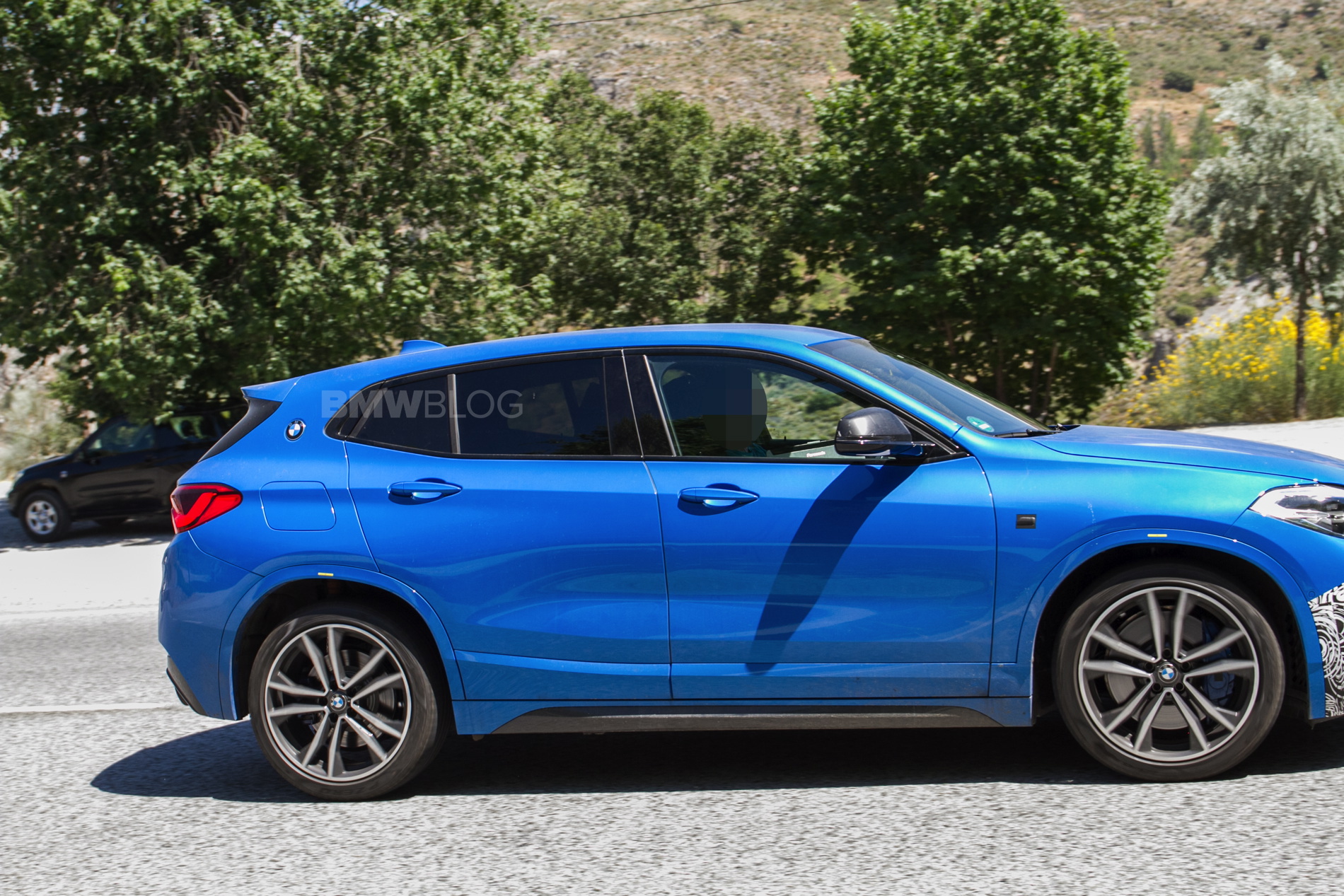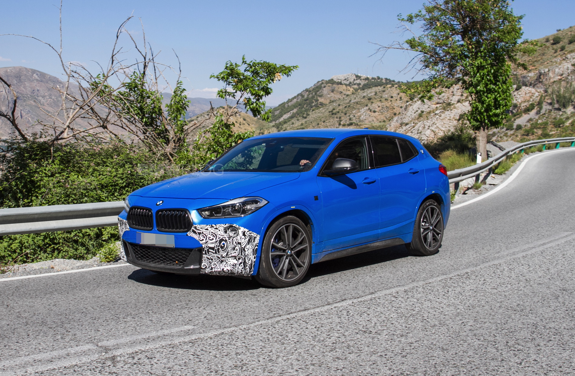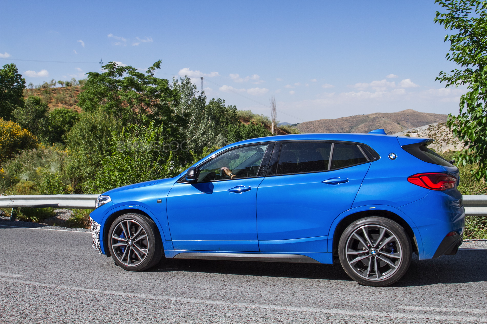 An X2 M35i prototype was just spotted in Spain, wearing little camouflage and giving us a nearly complete look of its design. We see the X2 with a sportier looking front fascia, dual exhausts with bigger pipes and larger wheels, all of which make this X2 seem like an M Performance model. The larger blue brake calipers are also indicative or a sportier model but the fact that the front brakes seem to sport two-piston calipers, it seems to be an actual performance model, rather than just an X2 with an M Sport package.