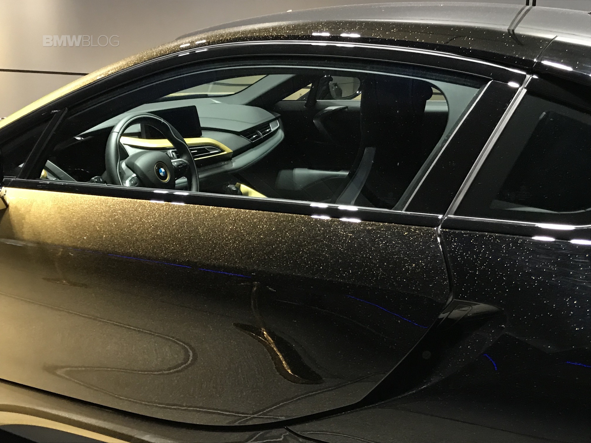 Because of the highly challenging paint job, it took about nine month to produce both cars. A preparation time of seven months was used to evaluate up to twelve different design concepts and to test seven technological processes to transfer the gold layers onto the cars. The actual execution of the paint job took two month for both cars. Six layers of original BMW paint were used in the first place to create the visual depth of the surface before a total of four gold layers were painted onto the i3S and i8. The last gold layer was applied manually in order to form the “star-like” structure.