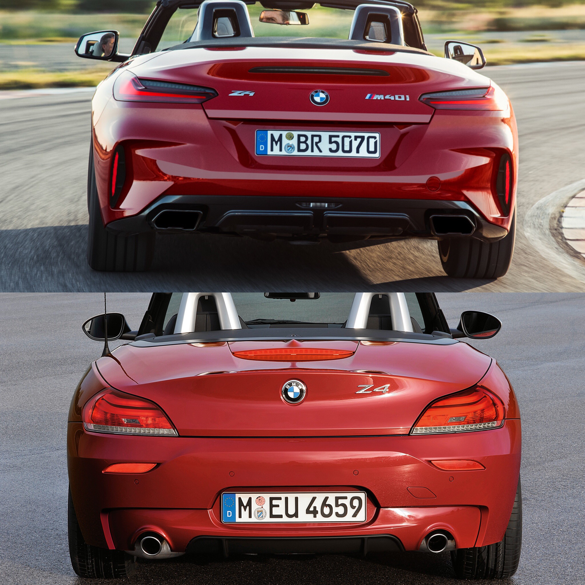 Out back, the new G29 BMW Z4 is much flatter, wider and lower looking. That makes it look and feel sportier, more athletic. The old E89 is pretty but it’s starting to look dated, a bit Bangle-y.