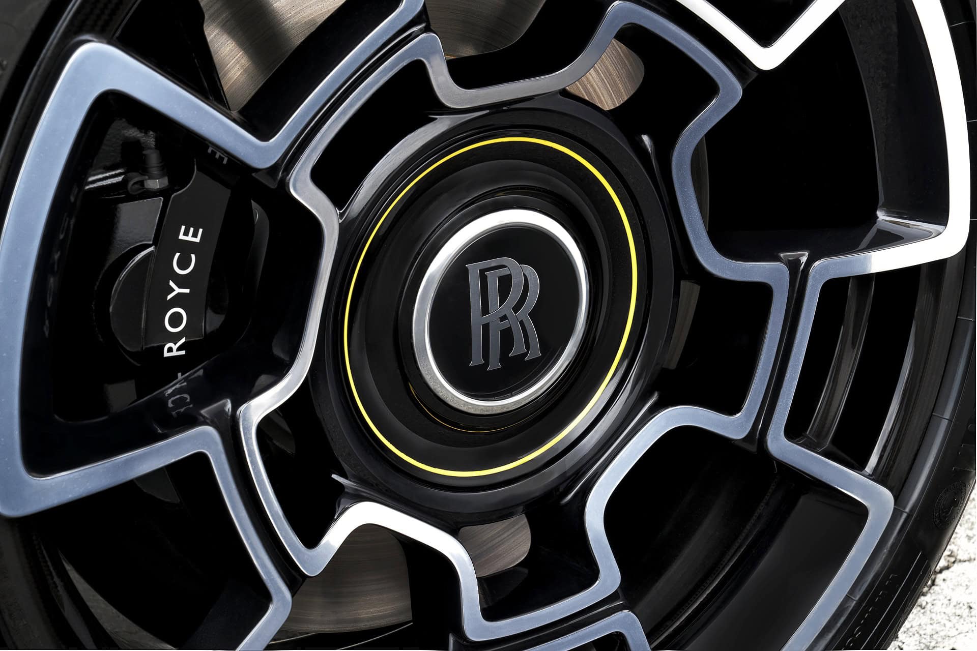 The intense deep yellow that adorns the main bodywork has been named ‘Superflare’ due to its radiance under the California sun, whilst it is contrasted with the darkest of navy blues named Pikes Peak Blue due to Sloss’ interest in the king of timed hill climbs. A further flash of Superflare yellow offsets the black of the 21” carbon fiber and aluminum wheel. The same color scheme is continued throughout the interior of Mr. Sloss’ Dawn Black Badge, with the seats, dashboard, tonneau cover and rear seat waterfall clad in Navy Blue leathers, highlighted with Bright Yellow seat piping, stitched RR headrest logos and, unique to Black Badge models an infinity logo between the rear seats.