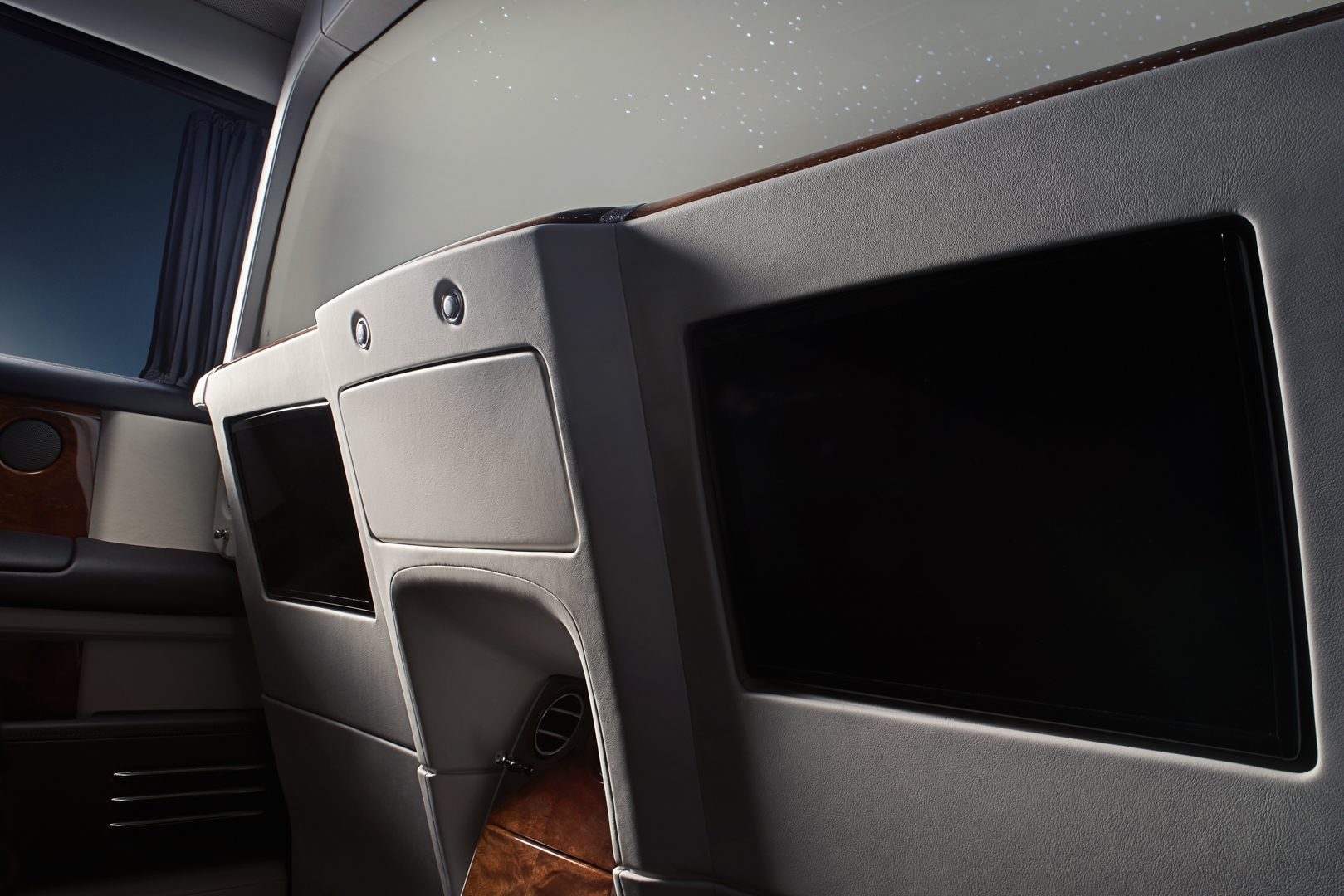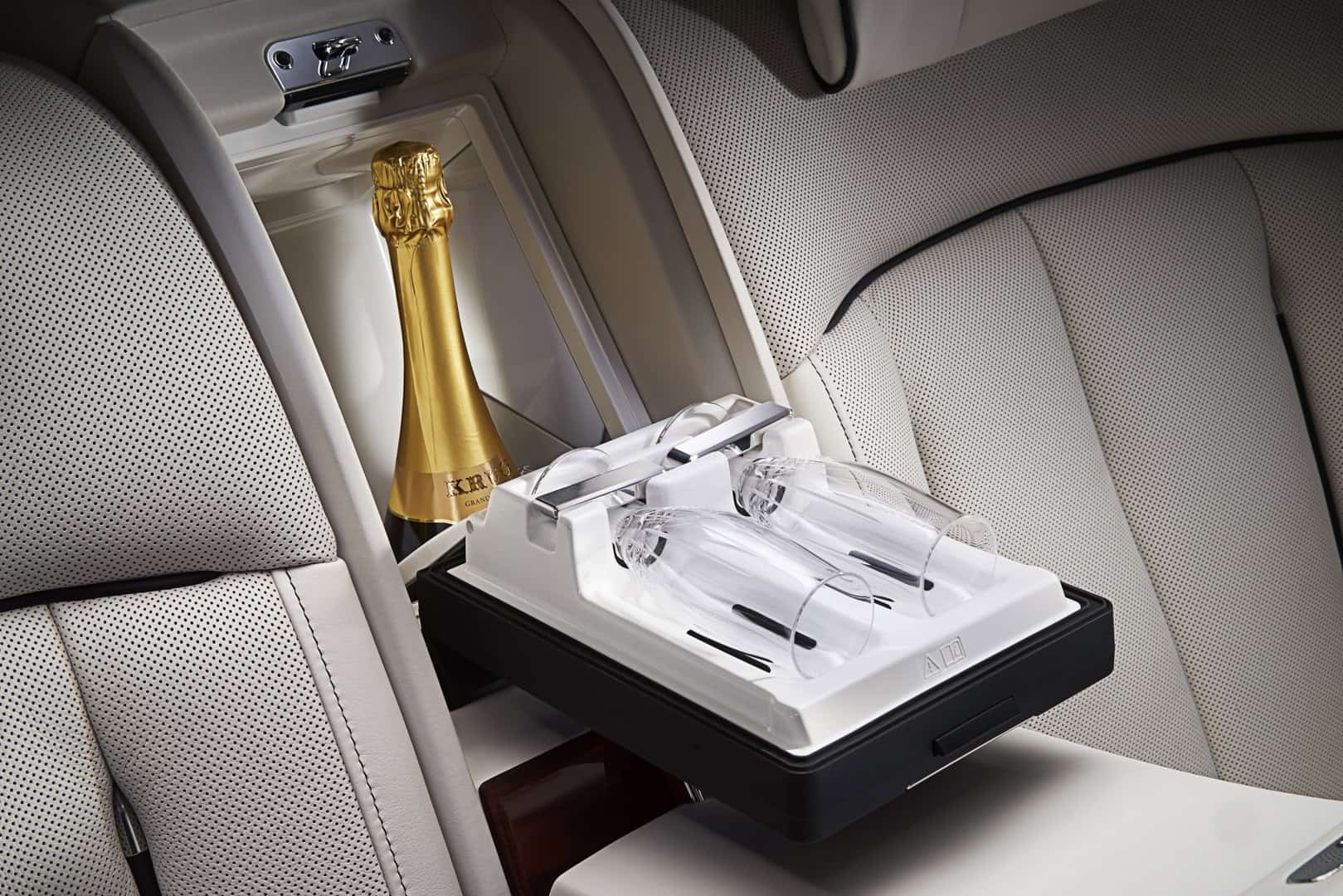For the Rolls Royce Phantom EWB (Extended Wheelbase), which has a longer wheelbase and therefor more back seat room, the British brand offers what it calls a “Privacy Suite”.