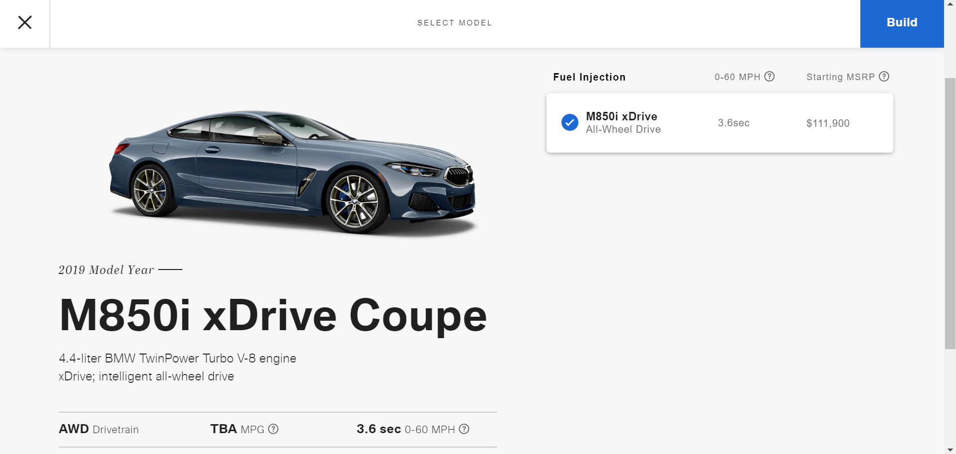 When it comes to models and trims, you don’t get a lot of options for the 8 Series just yet. As far as model variants, you can any you’d like as long as it’s the M850i. That’s the only one. And there are no trim levels to choose from.