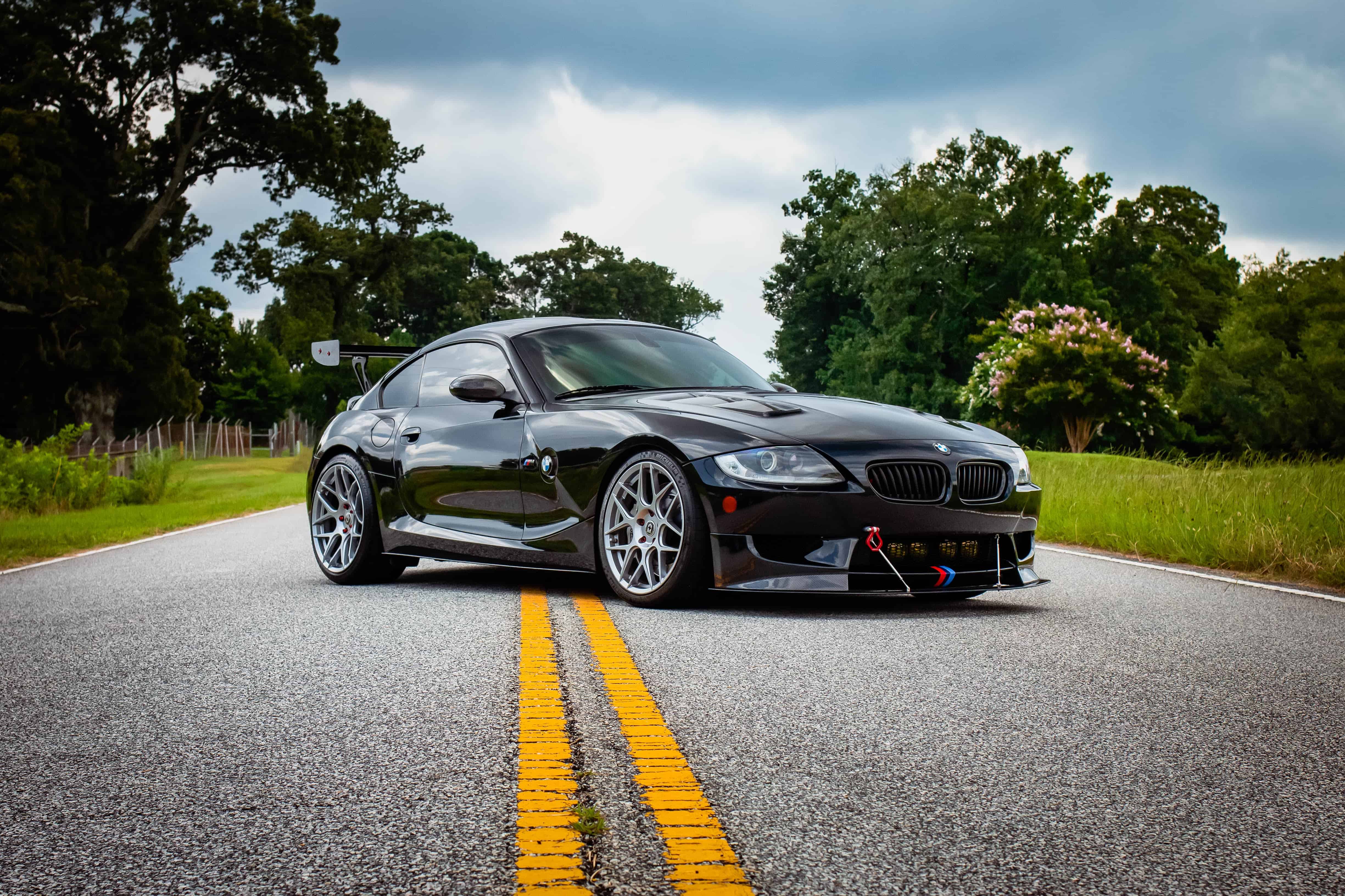 As you can see, this BMW Z4 M Coupe GTS has been designed for track duty. It features a lowered suspension, new HRE wheels wrapped in Michelin Pilot Super Sport tires, a vented hood, a massive rear wing and a manually-adjustable front splitter. It looks really good and like it’d be a blast to flog on a race track.