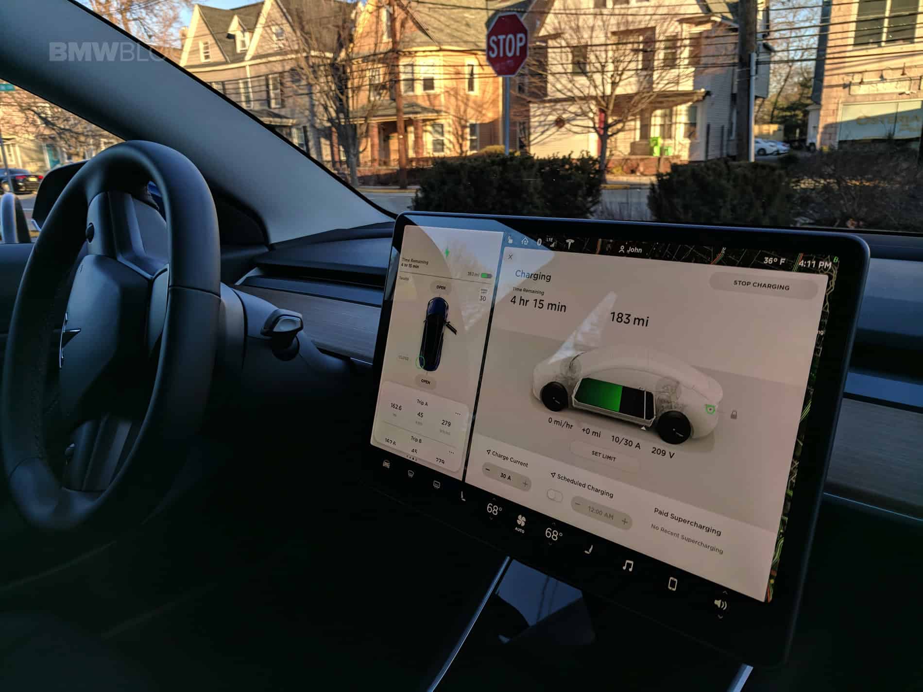 Software updates for the Tesla come over-the-air which can have big impacts on how the car functions. For example when the Model 3 launched, Autopilot adjustments had to be made by hitting the plus/minus on the top left of the center console screen. Then with an over-the-air update, all Model 3s now can use a thumb wheel on the right to change the speed of the car without taking your eyes off the road. To update the BMW i3’s software, it requires a dealer visit, though Maps will update over-the-air now.