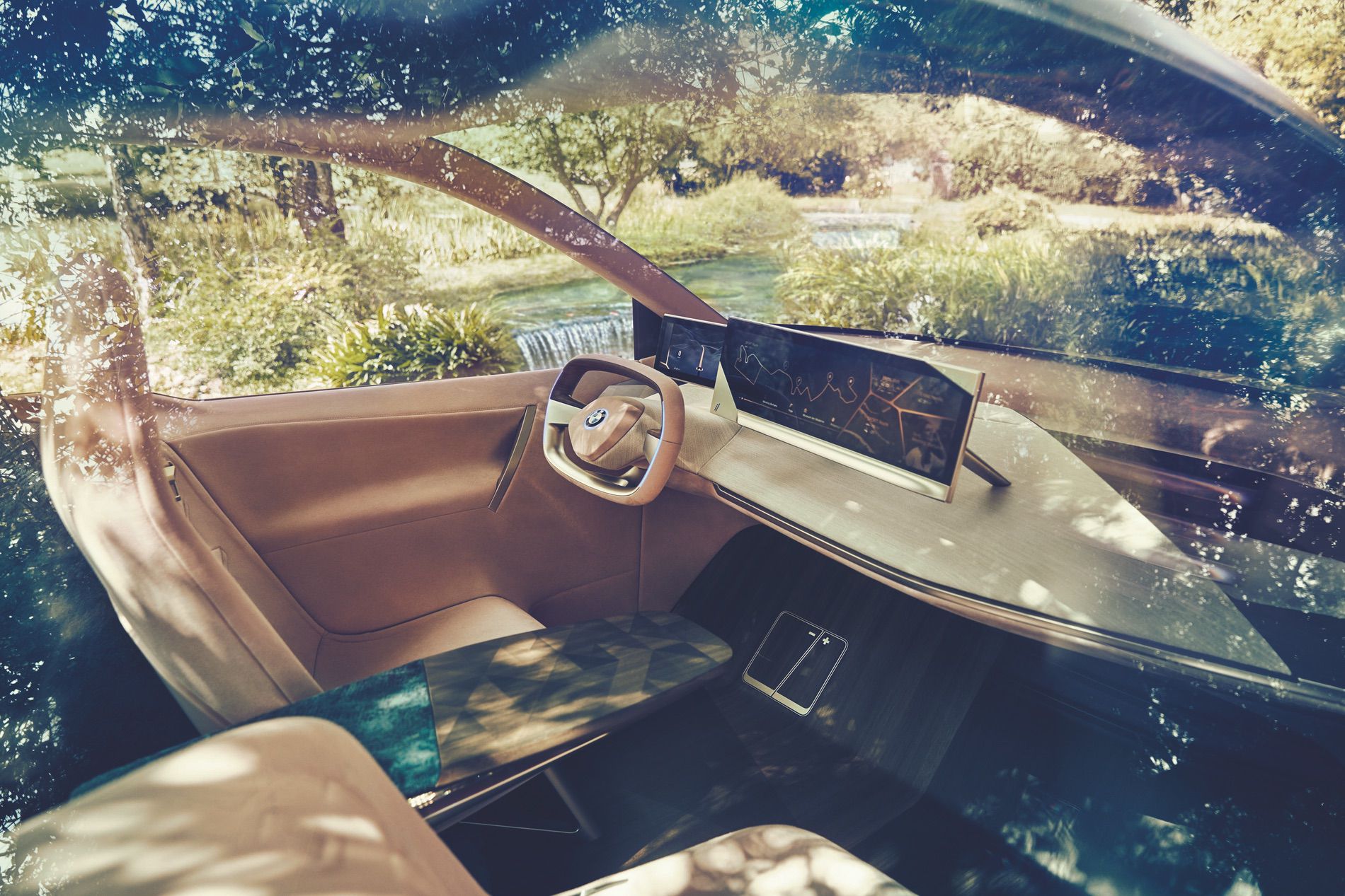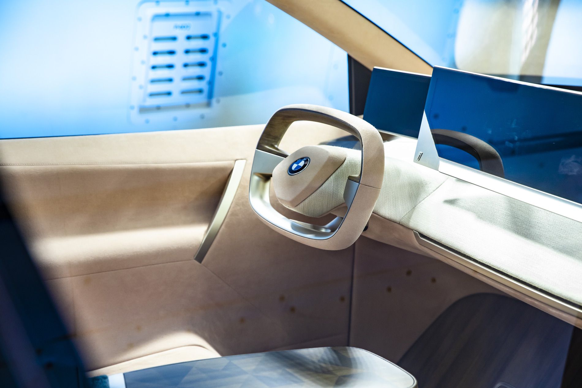 Inside, that massive windshield/sunroof provides an incredible amount of light. It also gives it a wonderful open, airy feeling. There seems to be a ton of space inside the Vision iNEXT, making even the BMW i3 seem tiny and cramped on the inside.