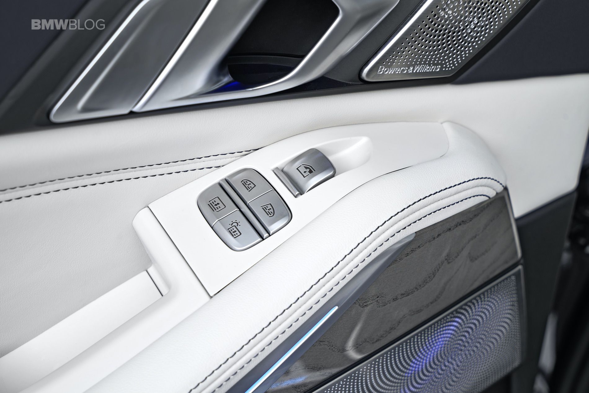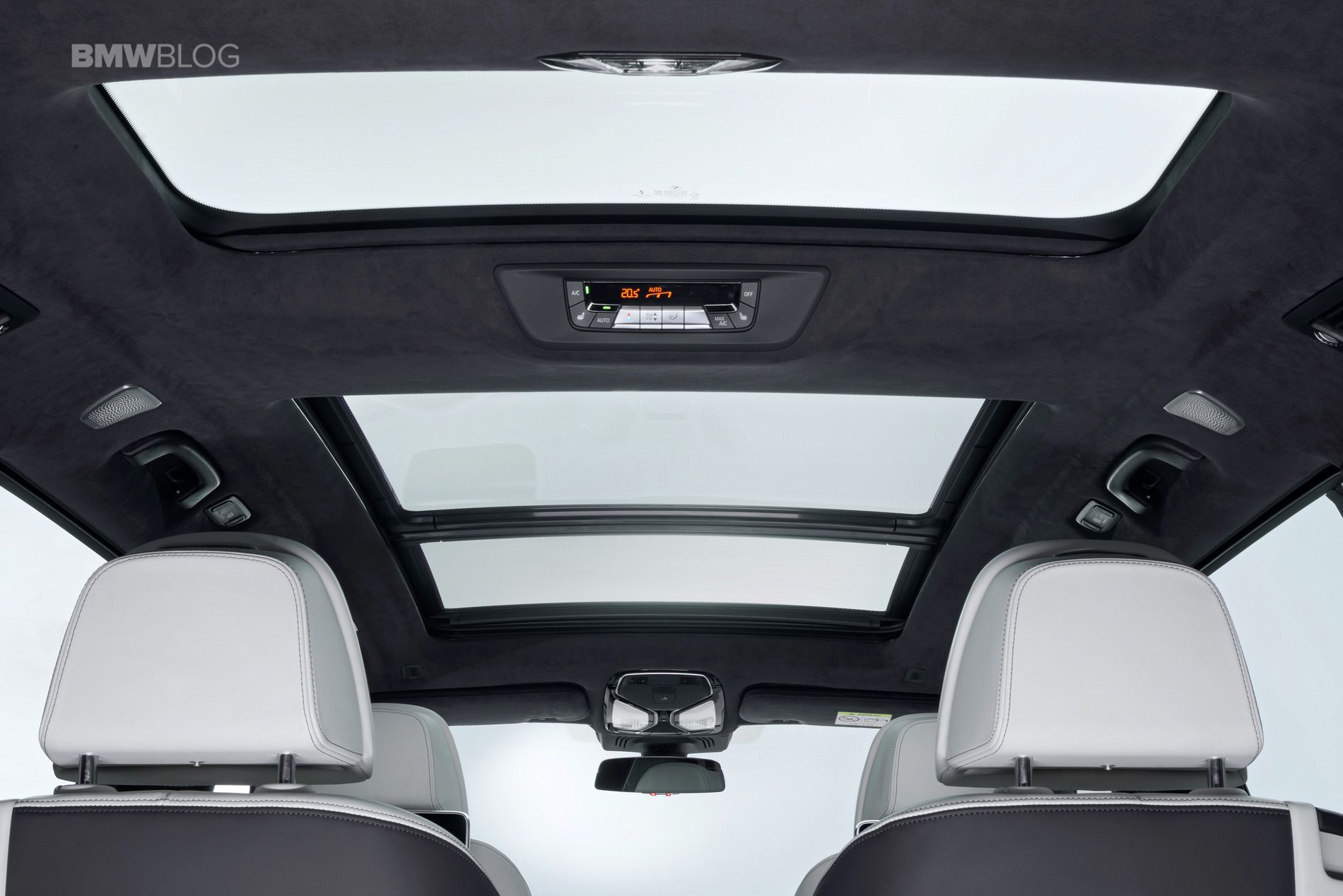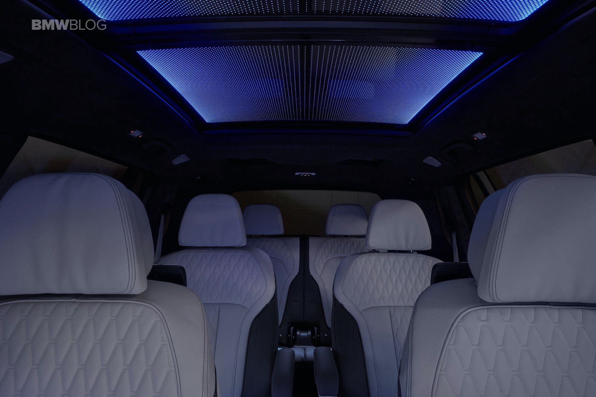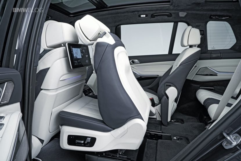 The luxurious X7 SUV can offer all three rows of seats in a bicolor full leather Merino – in Ivory White and Midnight Blue. If you opt for this option, you will also receive the Alcantara headliner in Midnight Blue. Also on board are the Bowers & Wilkins sound system with a total of 20 speakers, which unlike other series has the speakers housed in the roof.