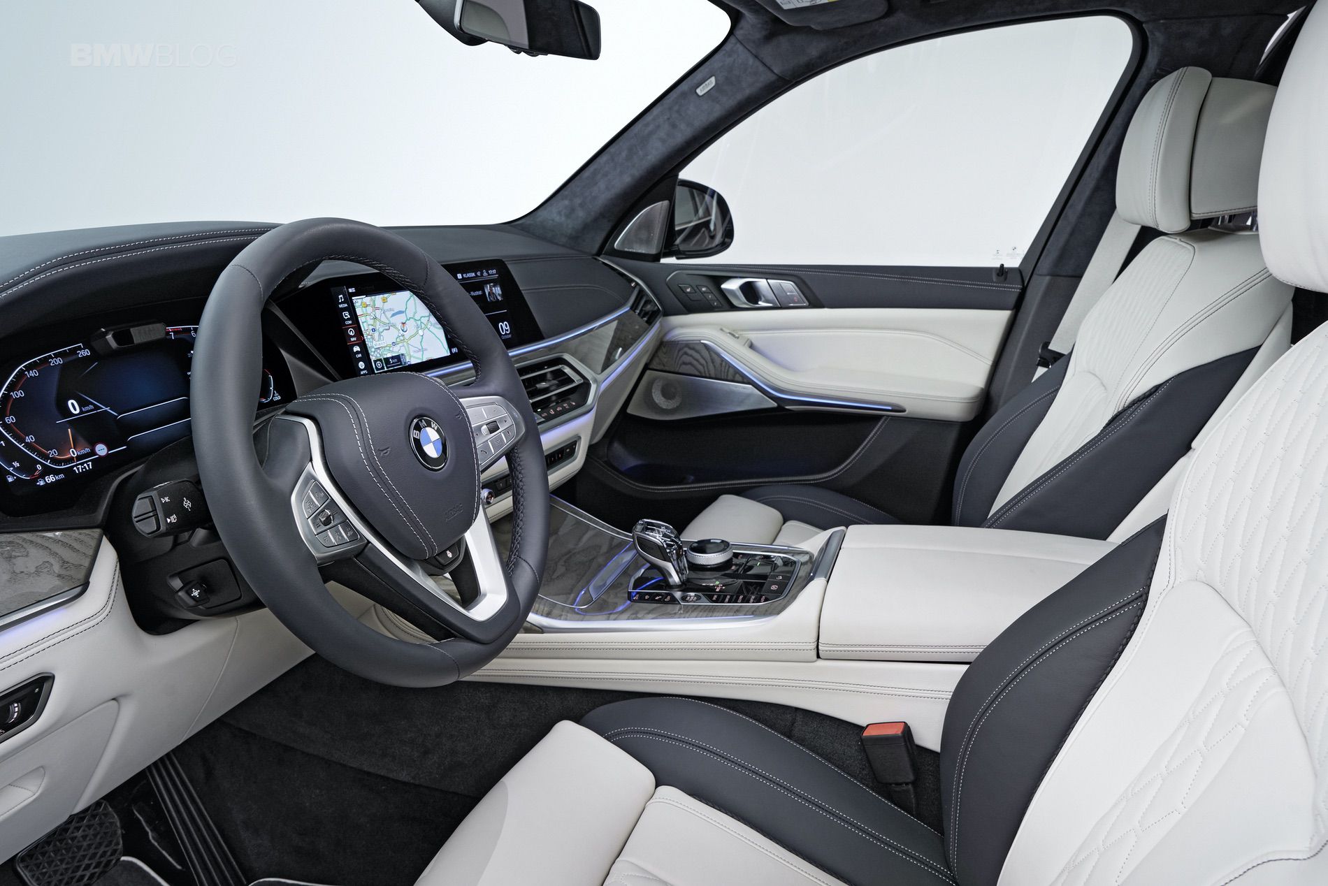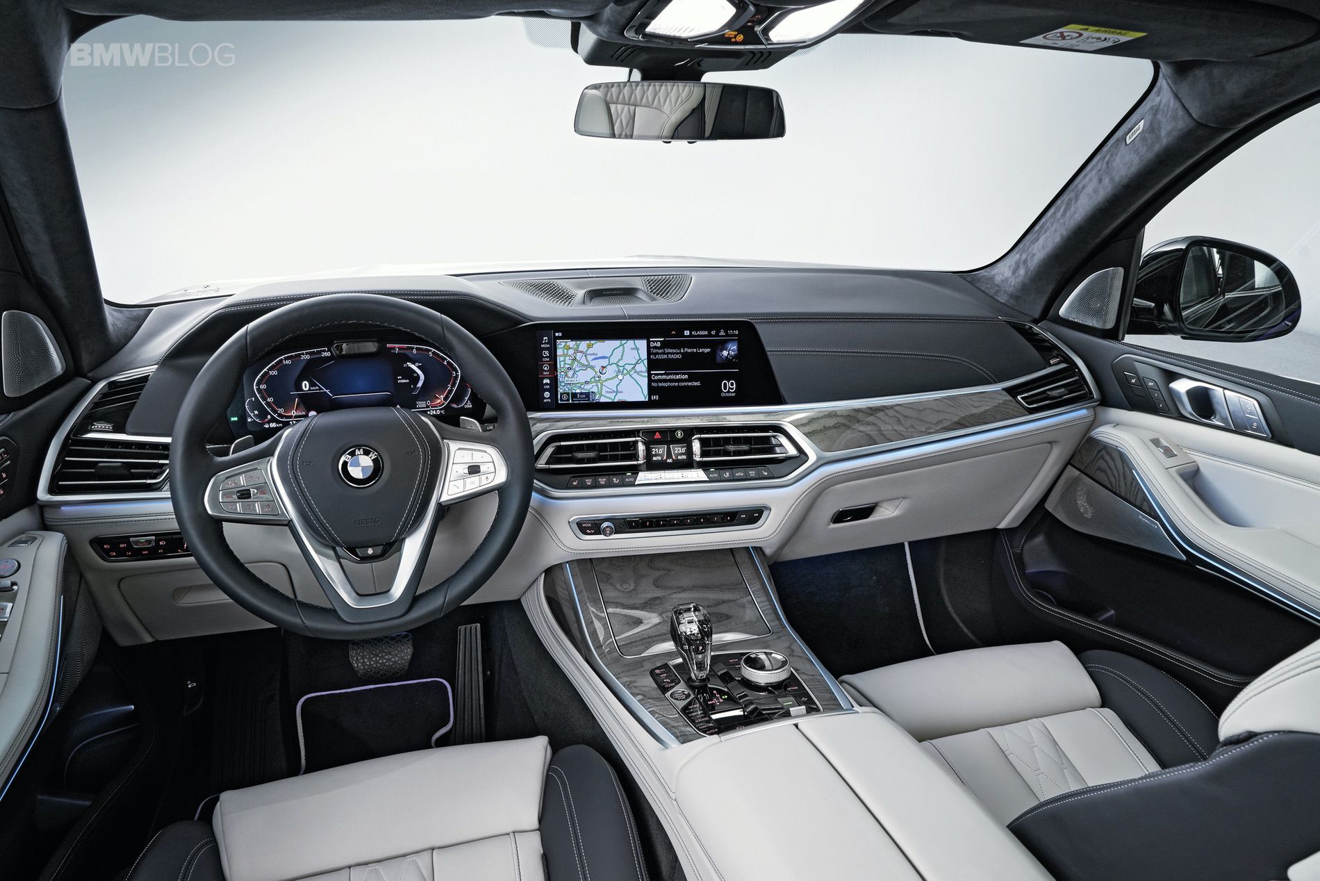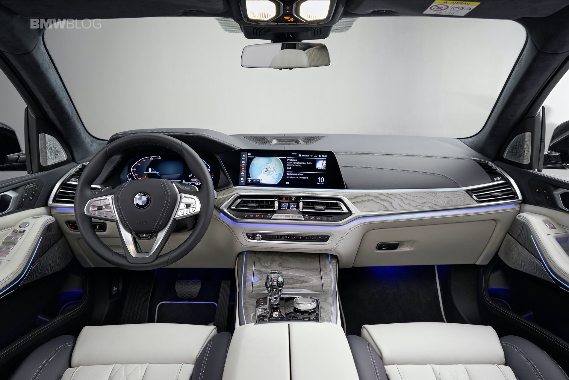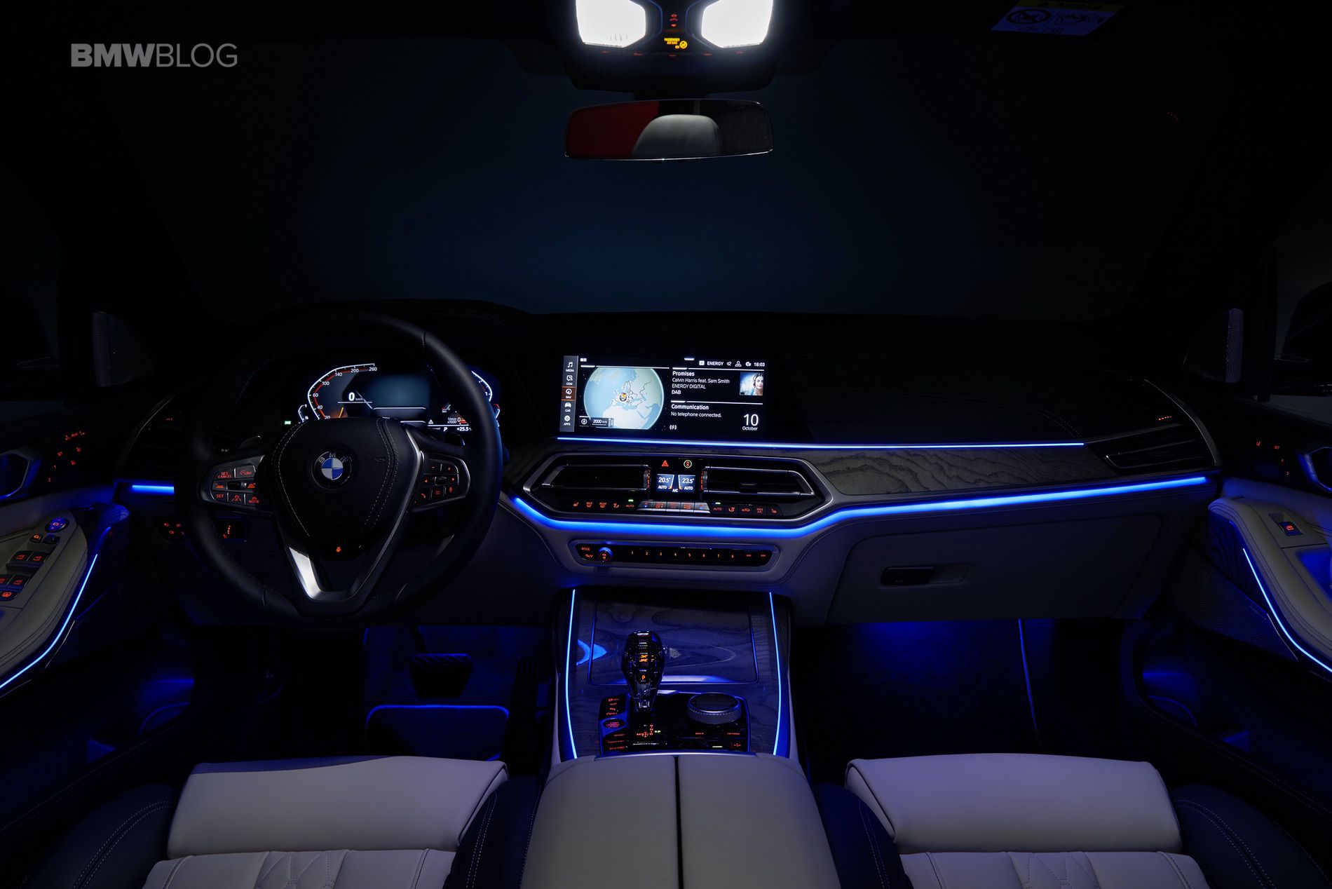 The luxurious X7 SUV can offer all three rows of seats in a bicolor full leather Merino – in Ivory White and Midnight Blue. If you opt for this option, you will also receive the Alcantara headliner in Midnight Blue. Also on board are the Bowers & Wilkins sound system with a total of 20 speakers, which unlike other series has the speakers housed in the roof.