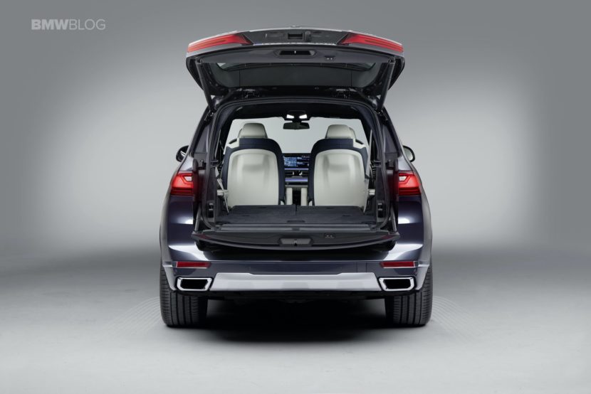 The rear looks equally wide and high, and already suggests that behind the split tailgate can accommodate a lot of luggage. Even in the configuration as a seven-seater, with mounted third row of seats, the BMW X7 still offers 326 liters of luggage space. If the third row of seats is folded down in the boot, the storage capacity extends to 750 liters. And anyone who wants to use the X7 as a furniture hauler, can fold both rear seat rows and get 2,120 liters.