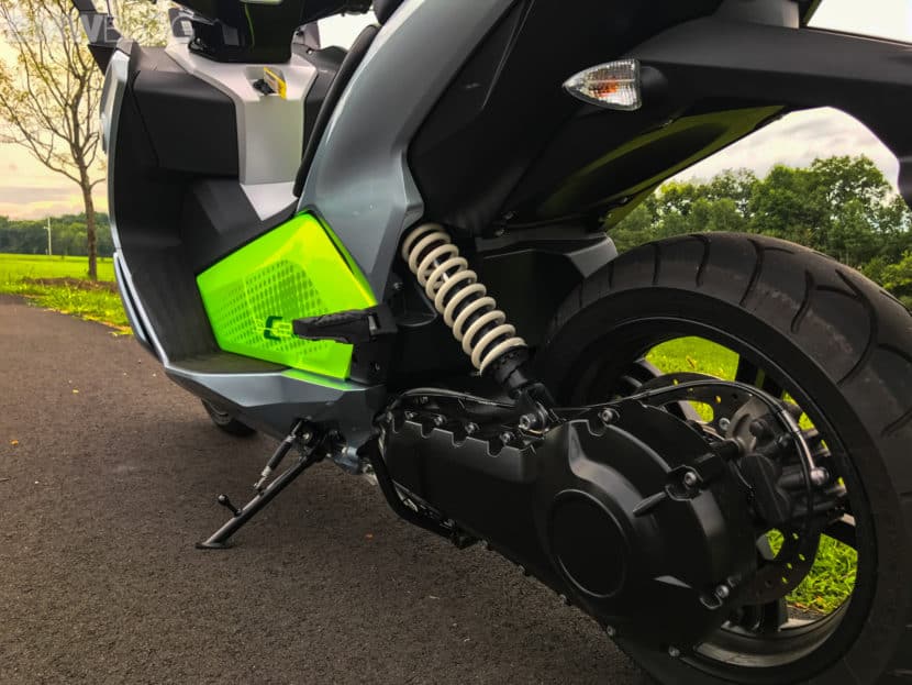 The aluminum battery case serves as a structural component, and the battery itself is air-cooled. Something which I found to be especially interesting is that the battery is actually shared with BMWi’s i3 city car. The very same 94Ah unit is utilized to power the C Evolution. Or rather, I should now say, “was shared with the i3” because during the time in which I have been writing this review, BMWi has actually increased the i3’s battery capacity to 120Ah.