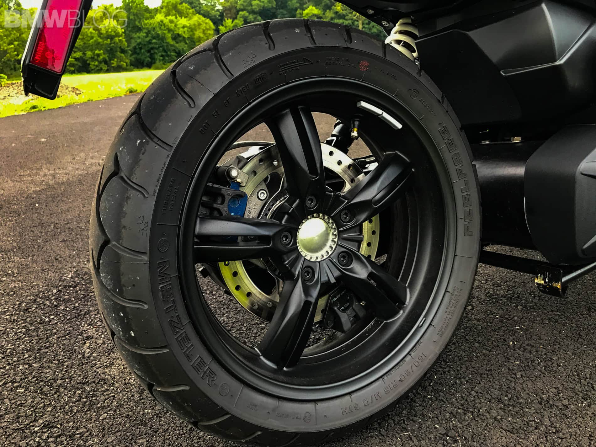 Its handling characteristics were equally as versatile. Incredibly nimble at slow speeds, again thanks to its low center of gravity. Surprisingly competent through sharper turns, during sporty riding, far exceeding my expectations for a scooter. Quite composed at speed and over road imperfections. Particularly undisturbed by the added weight of a passenger. That level of versatility is really confidence inspiring. Unsurprisingly, the Metzeler tires are the perfect companion. Sharp u-turns are also a breeze thanks to its tight turning radius.