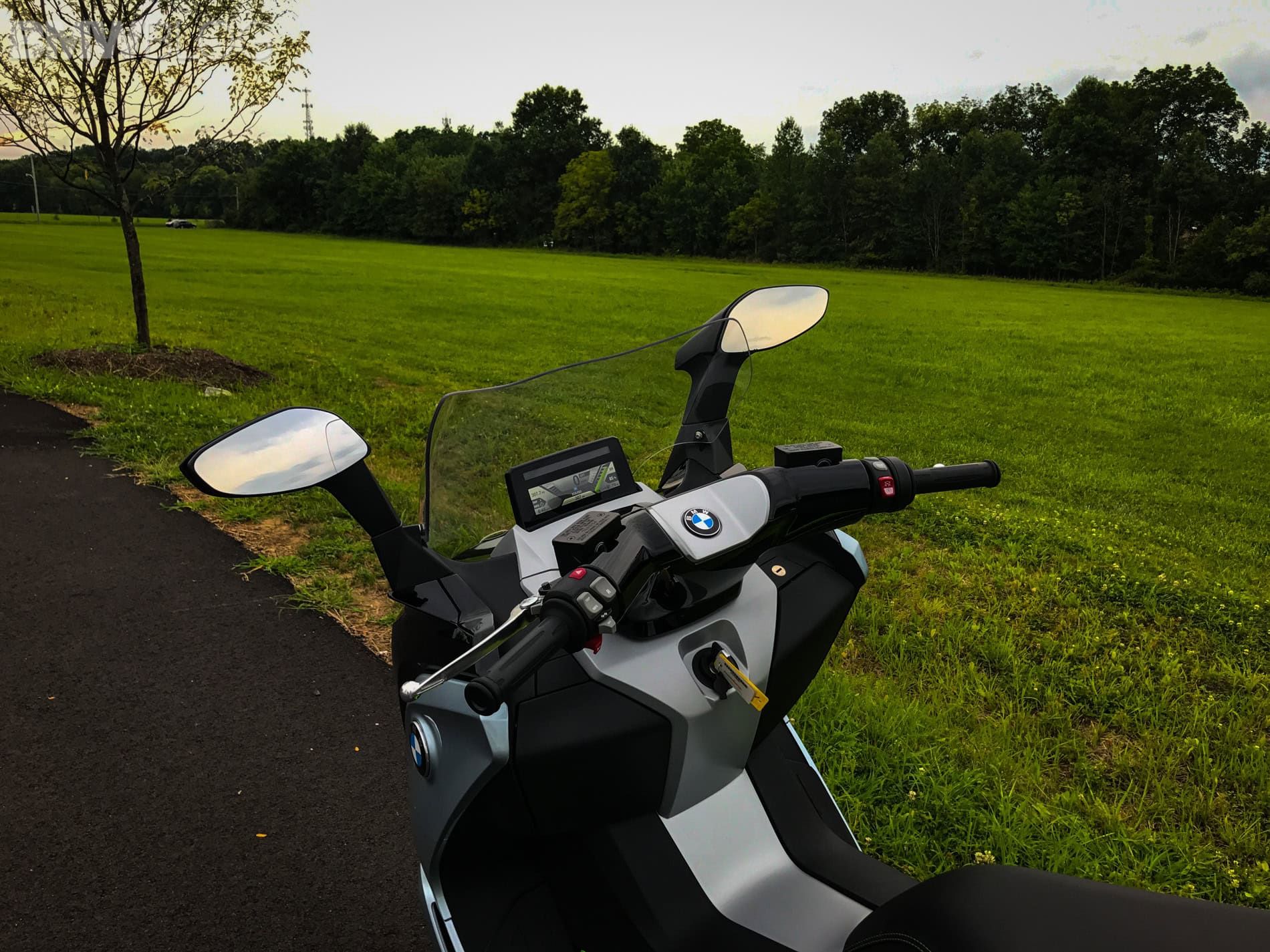 Actually starting the C Evolution is very familiar because it has the same start/stop button that you’d find on many modern Beamers. Depressing that button and pulling the brake lever inward does the trick, and then you know that you’re ready to go. Not because there is an audible indication, but because there is an indication on the display. There has to be because it “idles” silently. Putting the kickstand down will revert it back to being in what I’d consider to be a standby mode, requiring you to repeat that very brief start up procedure. It also engages the parking brake.