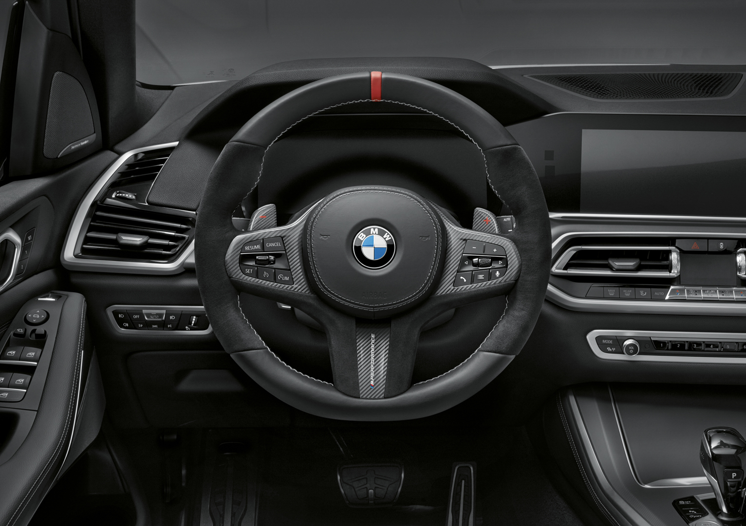 The rest of the M Performance Parts for the BMW X5 are pretty standard stuff. Carbon fiber aero kits, mirror caps, a rear diffuser and an Alcantara/leather-wrapped steering wheel with carbon trim are all available for the new X5.