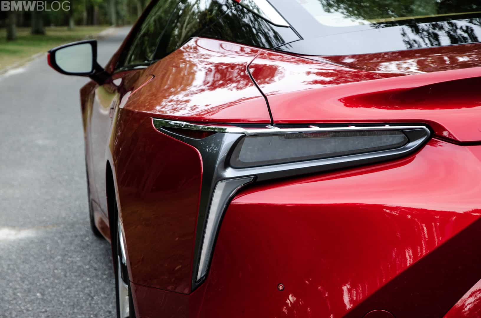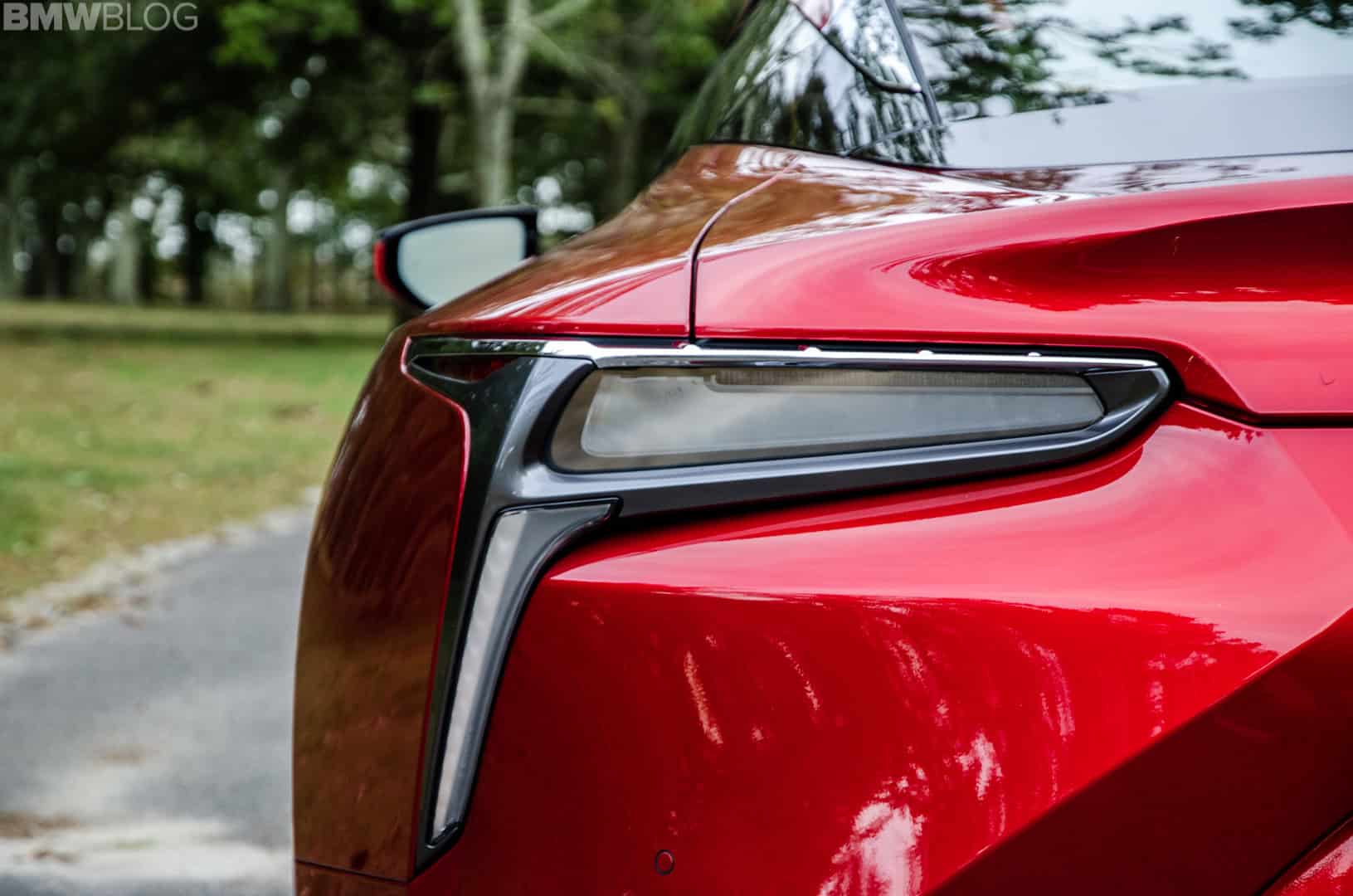 There are still some odd styling bits that don’t quite work. For instance, its headlights are far too fussy, with so many lines and shapes that they just look like a mess. They look like headlights by Jackson Pollock, just random lines and splashes. Also, the taillights, while fine looking, stick out a bit from the rear. That in and of itself is not a problem. The problem lies in a silver bit of plastic that sits atop the taillight housings, which almost looks as if it’s been spray painted with the cheapest silver paint possible. It’s scratchy and bubbly looking, completely unfitting of a car as expensive and posh as the Lexus LC500.