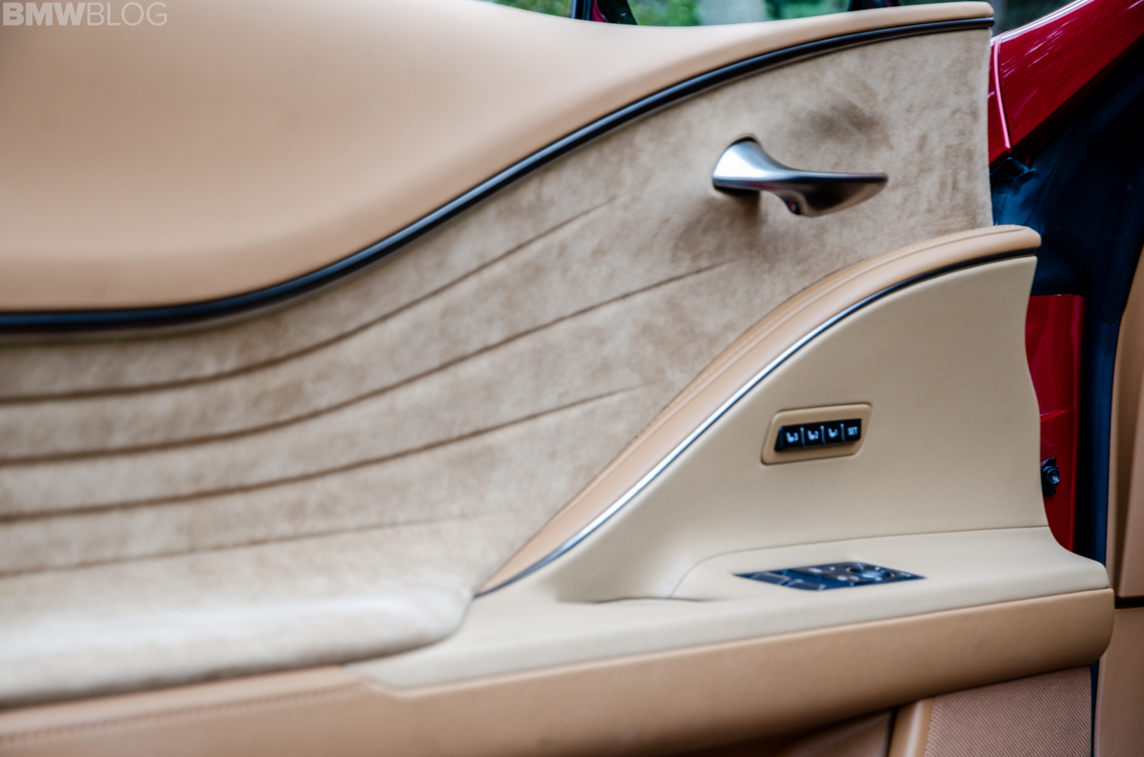 One of the coolest aspects of the interior is the door panel design. The doors feature a tier-like design with so many geometric levels that they really catch the eye. The sweeping Alcantara, the leather upper and lower portions and the long, aluminum door pull are all so expertly sculpted, it’s as if the Vatican had them commissioned.