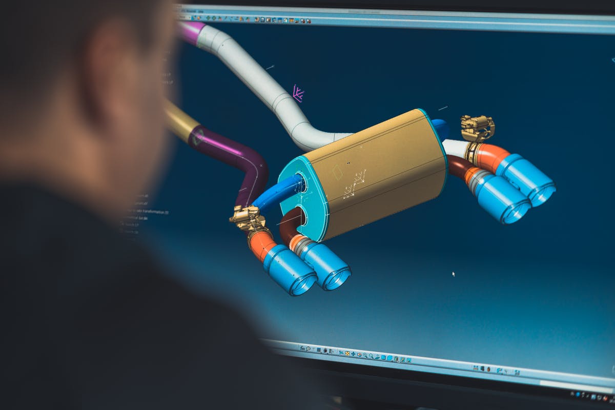 With this branded in our minds, let’s run through the development process of an exhaust and what it means for the engineers in Slovenia to develop a new exhaust system. After the vehicle arrived at the headquarters and the handover was completed, the development process started in a 3D CAD/CAM environment. The engineers created a 3D scan of the reference car’s underbody with the original exhaust still fitted on the car.