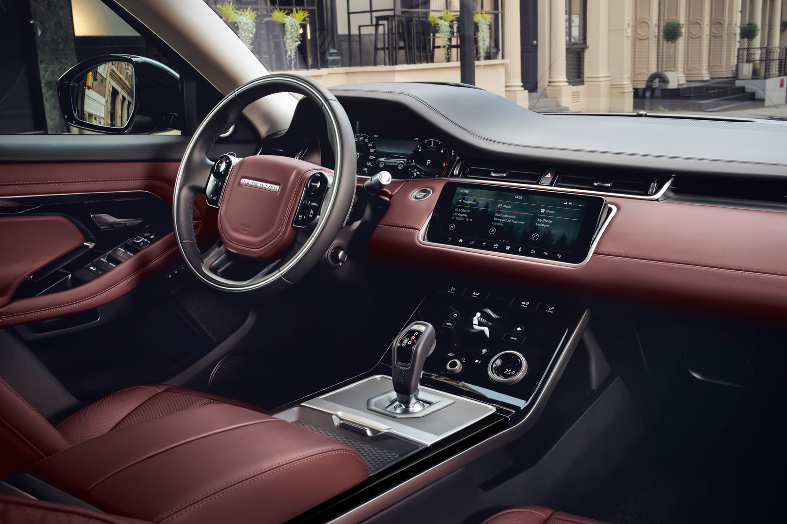 Inside, it’s all new as well. It gets an interior very similar to the Velar’s, only with some more interesting tech. For instance, it has a surround-view camera system that can actually show you the ground in front of you, virtually eliminating the entire front end of the car. For off-roading, or even just really tight parking, this new system looks incredible. It also has a rear-view camera, which displays its image in the rear-view mirror, allowing your mirror to be unobstructed by rear seats, rear pillars or anything that might be in your trunk. If the camera isn’t working for some reason, just flip a switch on the rear-view mirror and it once again becomes a traditional mirror. Cadillac actually debuted this sort of system first, on the CT6, and it seems to work really well.
