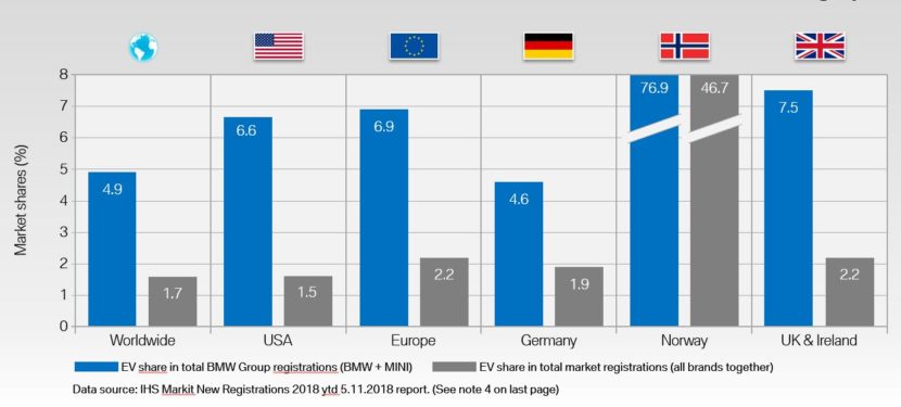A more in-depth look at how the markets shape up shows that in the case of BMW, sales of electrified models account for a lot more than in the case of other car makers and other markets. For example, 4.9 percent of all cars BMW sold worldwide are electrified while the average for all other manufacturers stands at about 1.7 percent. In the US, 6.6 percent of BMW sales are electrified cars while the market average is just 1.5 percent. In the UK and Ireland things are even further apart, 7.5 percent of BMW sales being electrified cars while the market average is 2.2 percent.