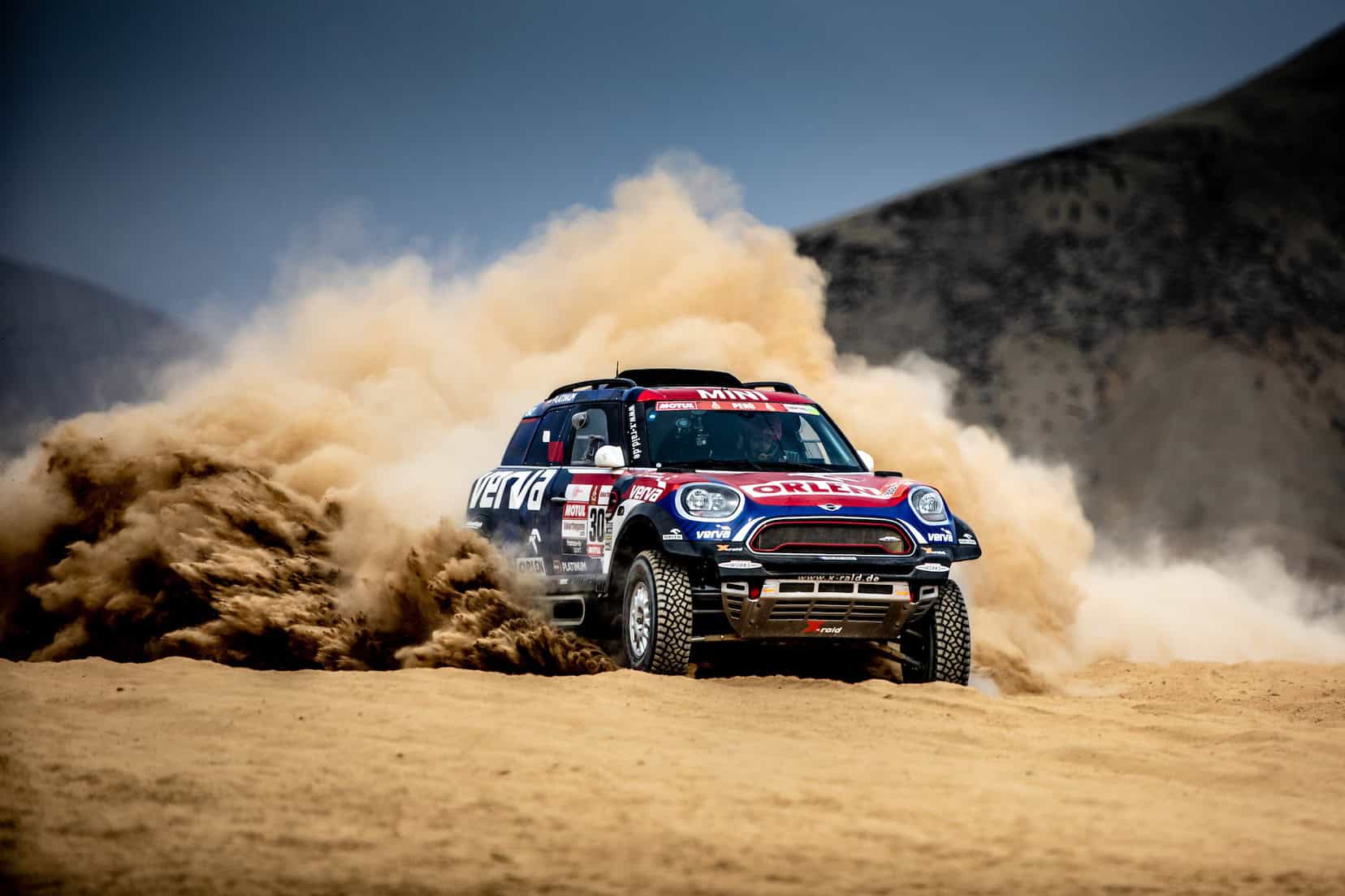 It may seem like nothing at first, but the 331-km long stage is filled with tricky terrain as is the entire Dakar Rally, as a matter of fact. Just finishing is a challenge in itself. Nevertheless, Carlos Sainz and Lucas Cruz of the X-Raid MINI JCW Team managed to end the first stage with their MINI JCW Buggy on second place. Jakub Przygonski and Tom Colsoul were ranked third overall with their MINI JCW Rally car while the fifth place went to the car driven by Yazeed Al-Rajhi and Timo Gottschalk.
