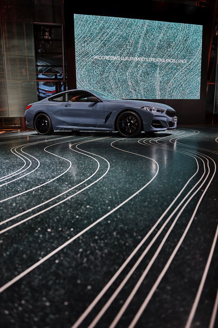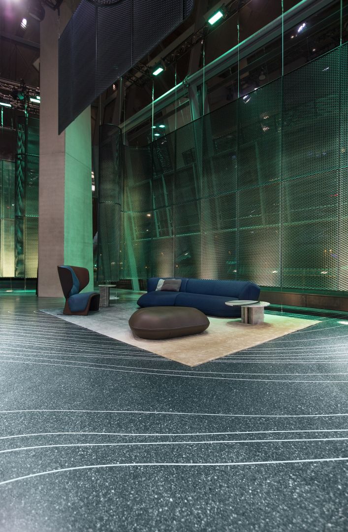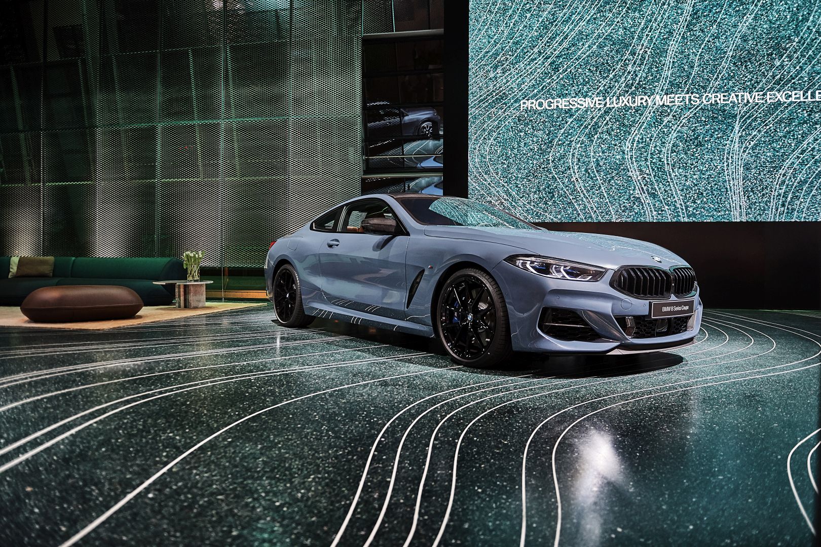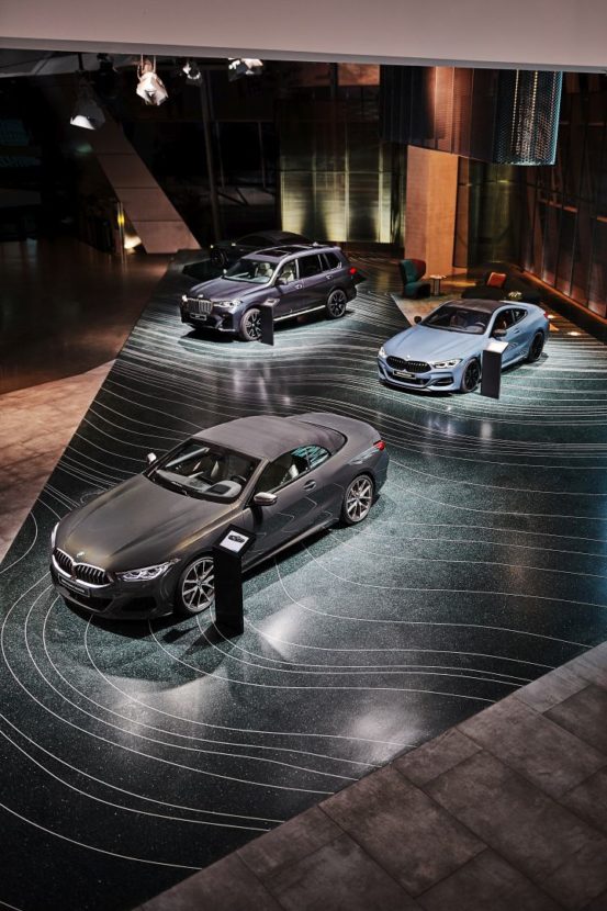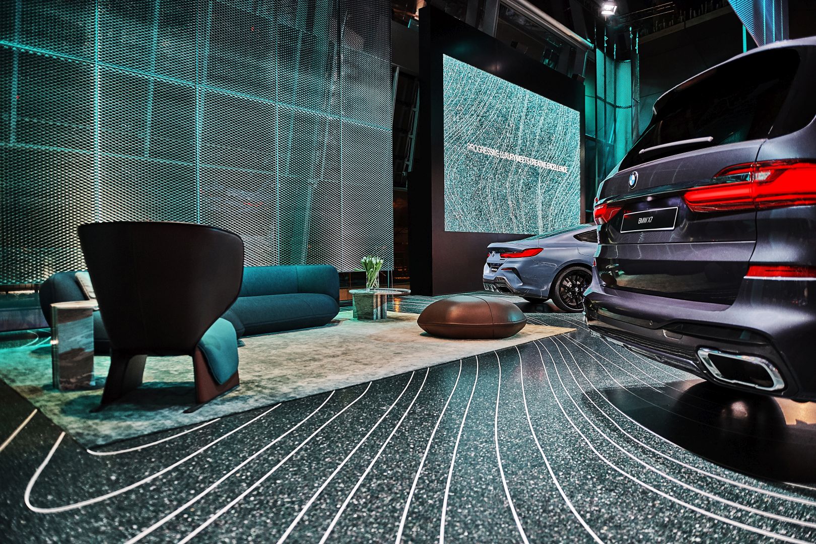 In order to do so, she chose to focus on freedom as this is the ultimate luxury in her view. Furthermore, she was inspired by the BMW M8 Gran Coupe Concept, its gradient color and the photo shoot of it on a frozen lake, all of which worked together for the designer’s transformation of the space inside the BMW Welt Museum. The end result at BMW Welt is a design for the presentation of BMW’s new flagship models, not just the 7 Series LCI. Classic terrazzo teams up with cutting-edge 3D-printing technology and brings a feeling of organic lines to the 3D-printed elements used on the floor of the space.