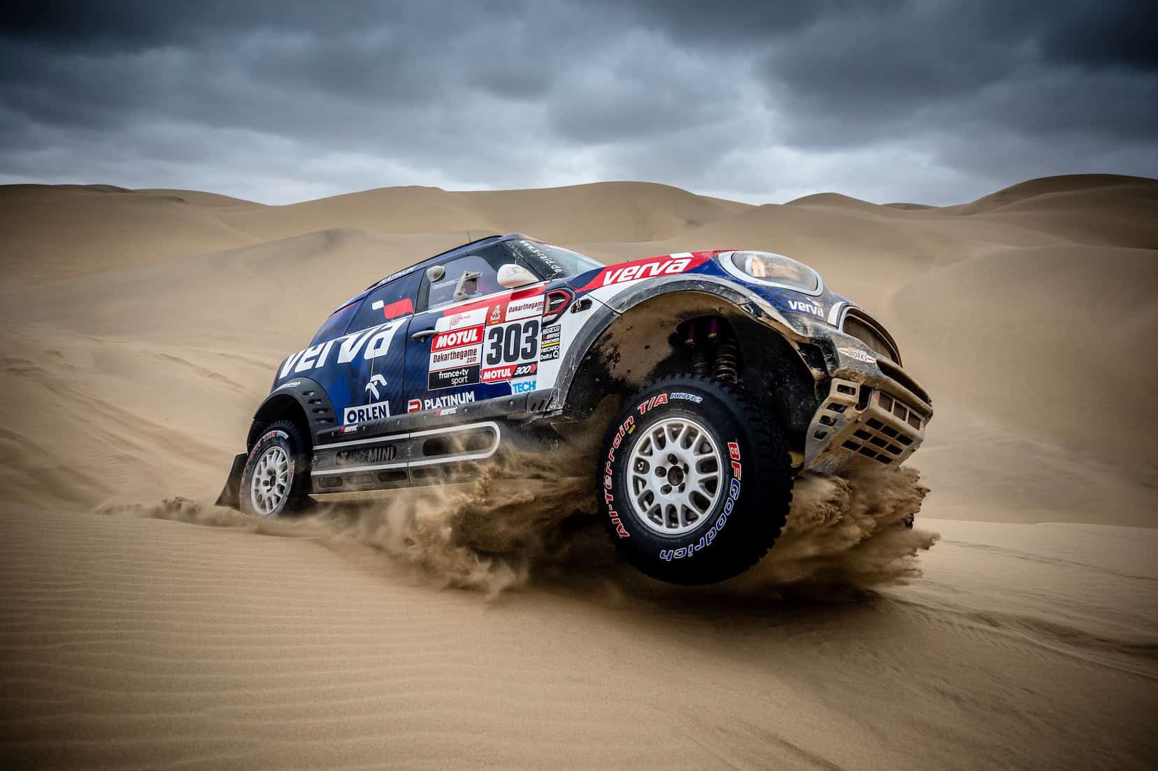 Therefore, Peterhansel hit a bit of bad luck, getting stuck in the first set of dunes and then once again before the finish line. “The first 150 km were very fast and we overtook a trio of bikes. This made me the first vehicle into the dunes, so there were no tracks to use as orientation. We then got stuck after 20 km. The sand was very soft and difficult to read. And then, 50 km from the finish, we hit a big hole in the dunes and again got stuck,” said the Frenchman about the stage.
