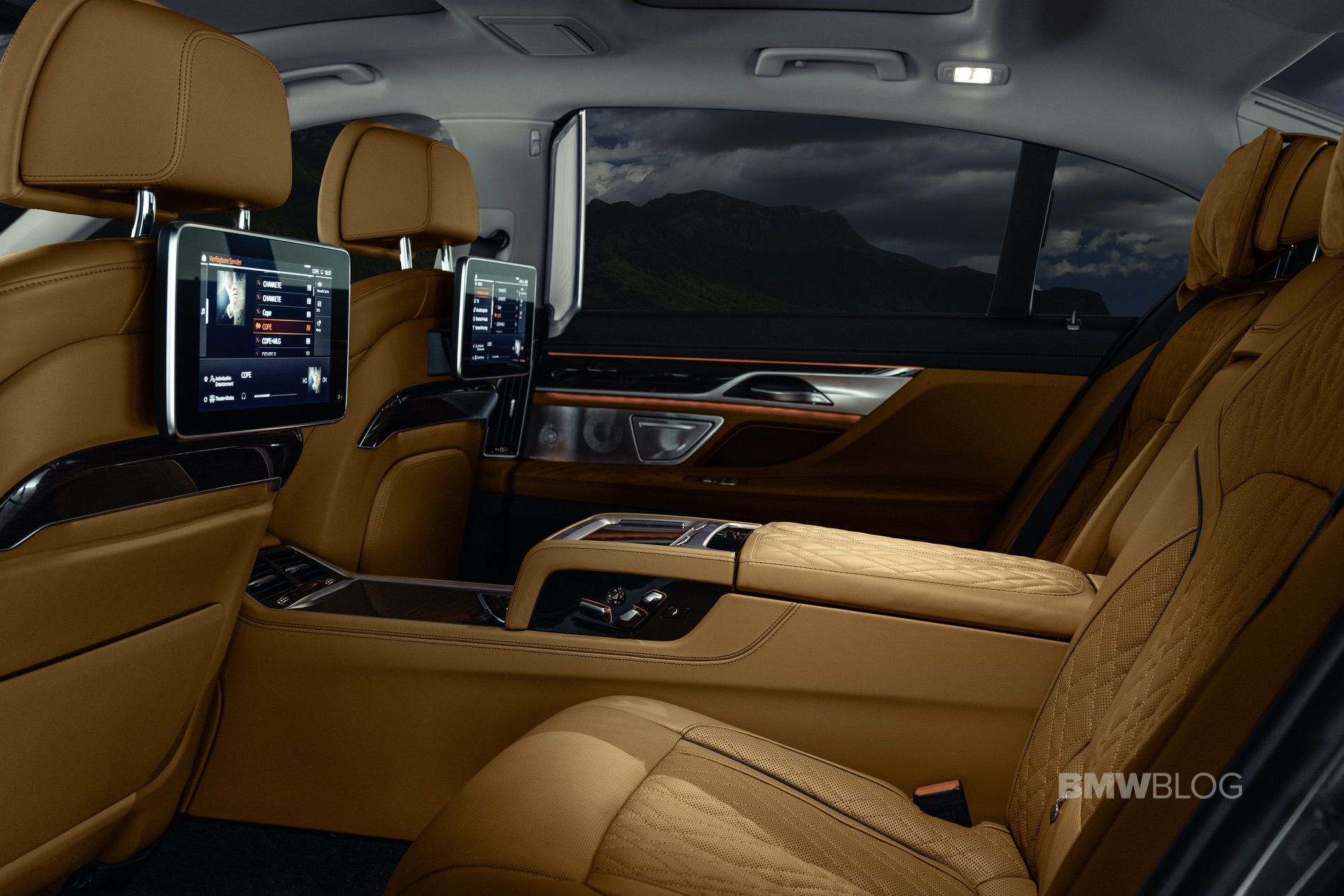 Interior Design Package (for 740i, 740i xDrive, 750i xDrive and 745e xDrive) – includes wood grab handles, Rear Seat Belt Cover in wood trim, Rear Center armrest with wood trim, Luxury Rear Floor Mats and Alcantara Headliner in Coordinated Upholstery Color.