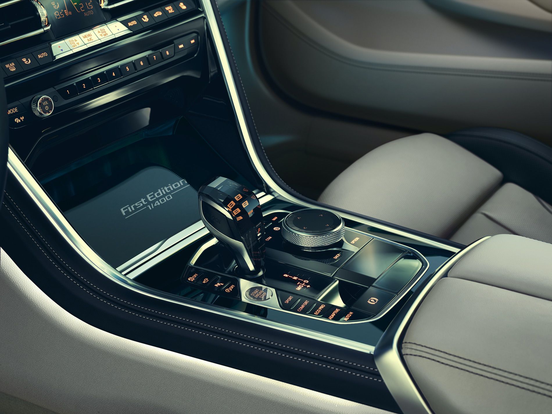 Inside the car, BMW Individual interior trim strips in a Black Piano finish, which are located in the centre of the cockpit, bear the lettering “First Edition 1/400”. Moreover, the Bowers & Wilkins Diamond Surround Sound System and the Crafted Clarity glass applications on the start/stop button, the iDrive Controller, the volume control and the illuminated gearshift lever complement the luxurious interior ambience.