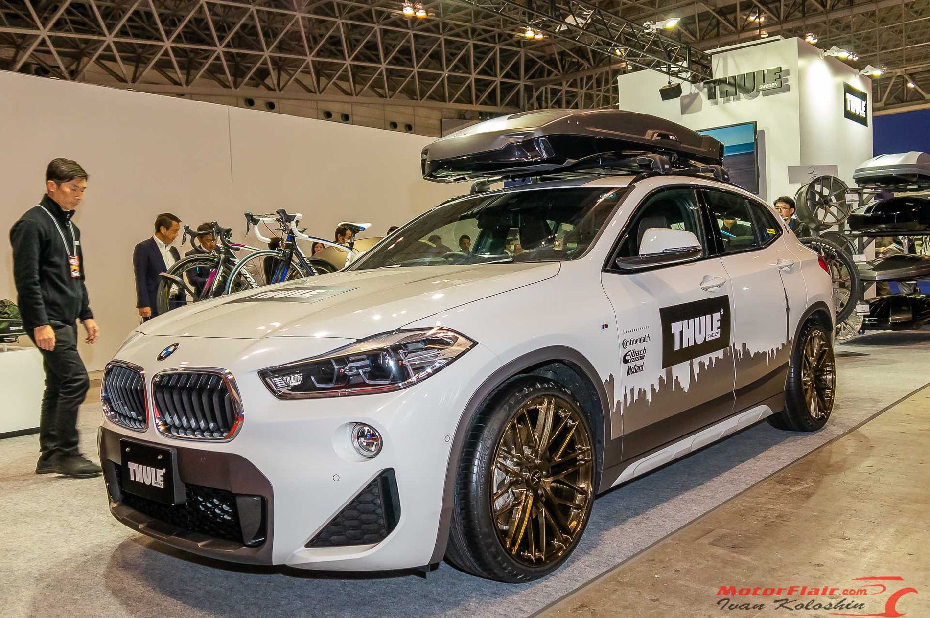 What’s awesome about the Tokyo Auto Salon is the amount of creativity and fun. It’s more lighthearted than shows like SEMA, where everyone is just trying to out-do everyone else. Here, it’s just about being crazy and fun. For instance, look at the Thule BMW X2. The X2 is not the sort of car that tuners or aftermarket brands want to tinker with, as it’s just a small crossover. Still, the Thule one looks awesome, with its gold wheels and roof box.