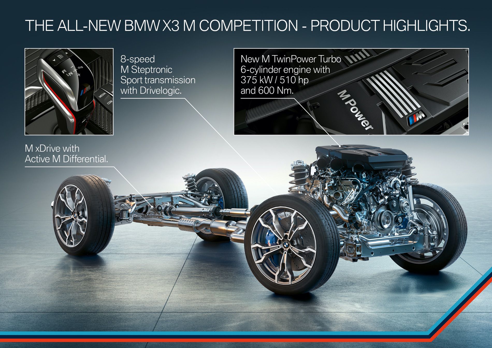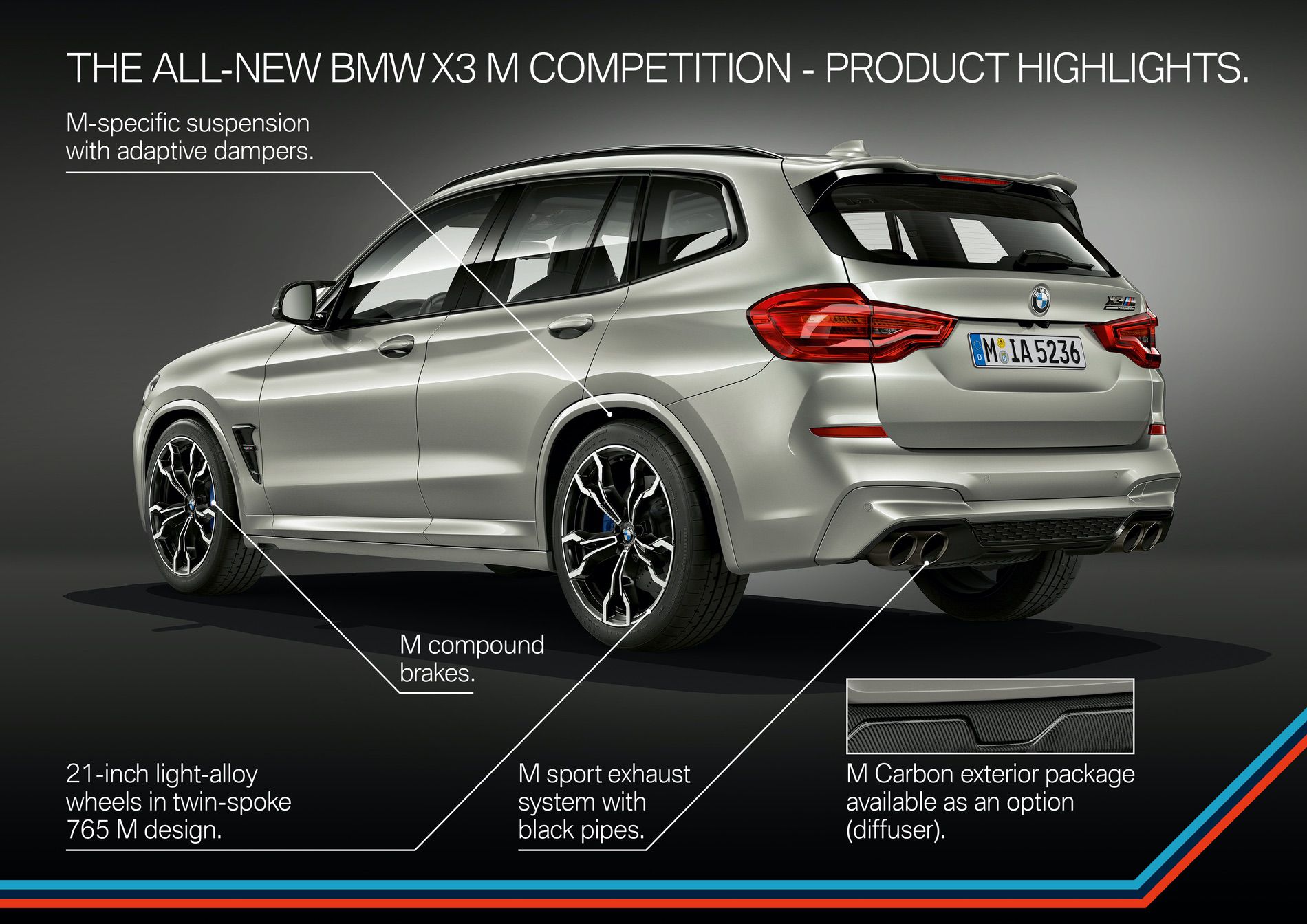 Possibly even bigger news than the BMW X3 M itself is the addition of an X3 M Competition model. While not drastically different, the BMW X3 M Competition does come with enough to separate itself. For instance, it gets some carbon fiber bits on the outside, such as its rear diffuser, and some on the inside as well. It also gets M-striped seat belts and some other little visual touches, as well as an M Sport exhaust system. Oh, and I forgot to mention, it gets 510 hp. That’s right, the BMW X3 M Competition has five hundred and ten horsepower, or more power than the BMW M4 GTS did. Torque stays the same, though. According to BMW, the 30 hp bump is enough to drop the 0-62 mph time by one tenth.