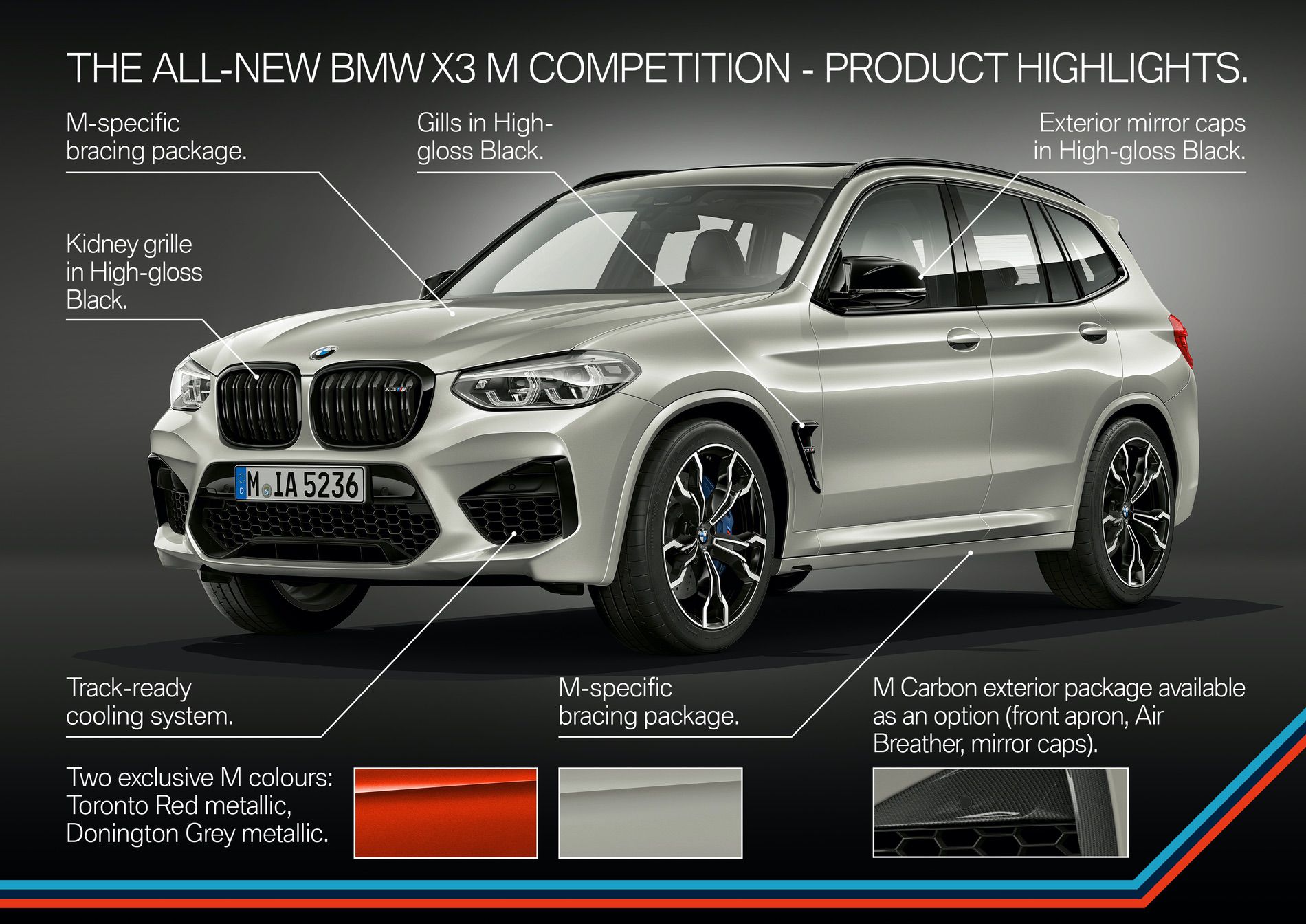 The Competition models get a High-gloss Black finish around BMW kidney grille’s surrounds.