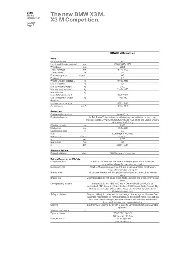 All of those tweaks and upgrades give the BMW X3 M a very healthy 480 hp and 442 lb-ft of torque. The latter of which is available from 2,600 – 5,600 rpm, giving it a nice, flat torque curve right in the middle of its rev range. According to BMW, it’s capable of 0-62 mph in 4.2 seconds but we reckon it will break into the three-second range in reality. It’s not just about power and performance, though. BMW has improved its cooling and oil management, so it can handle long track sessions without overheating or being starved of oil from high-g force cornering.