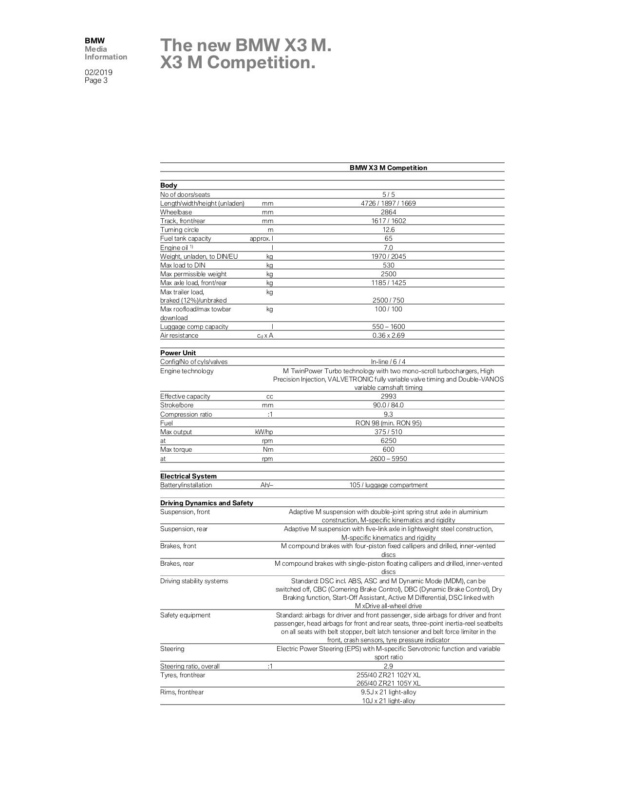 All of those tweaks and upgrades give the BMW X3 M a very healthy 480 hp and 442 lb-ft of torque. The latter of which is available from 2,600 – 5,600 rpm, giving it a nice, flat torque curve right in the middle of its rev range. According to BMW, it’s capable of 0-62 mph in 4.2 seconds but we reckon it will break into the three-second range in reality. It’s not just about power and performance, though. BMW has improved its cooling and oil management, so it can handle long track sessions without overheating or being starved of oil from high-g force cornering.