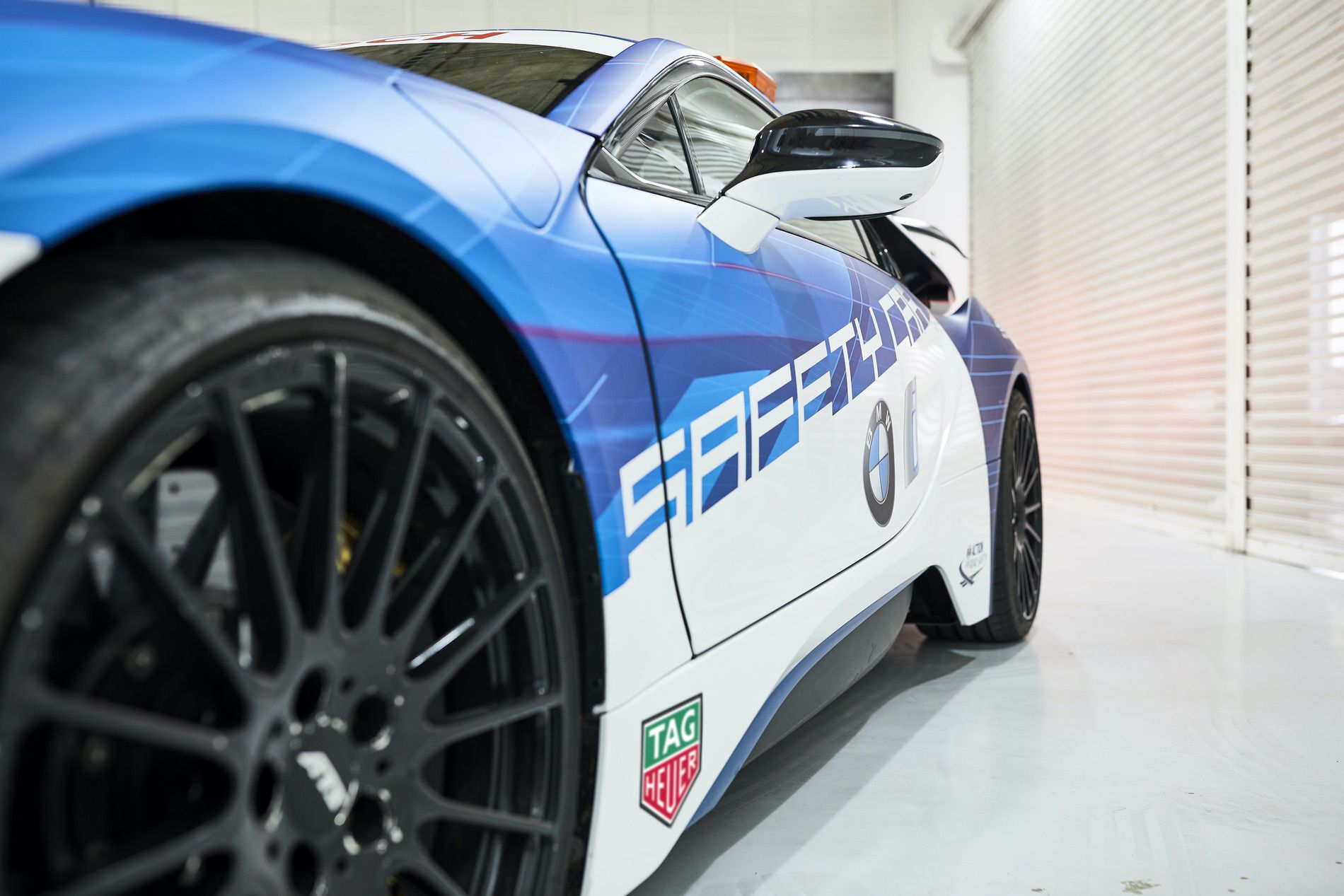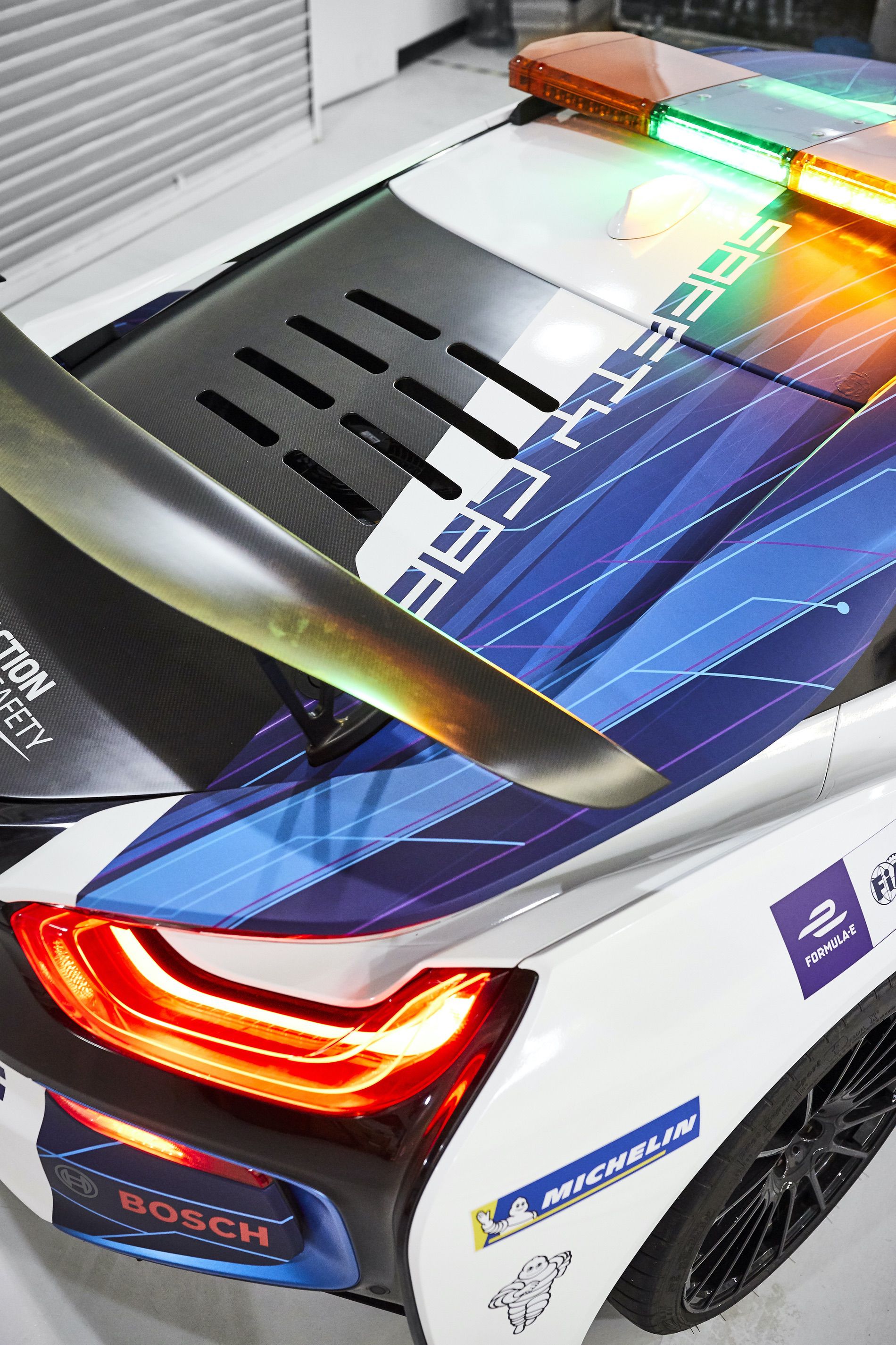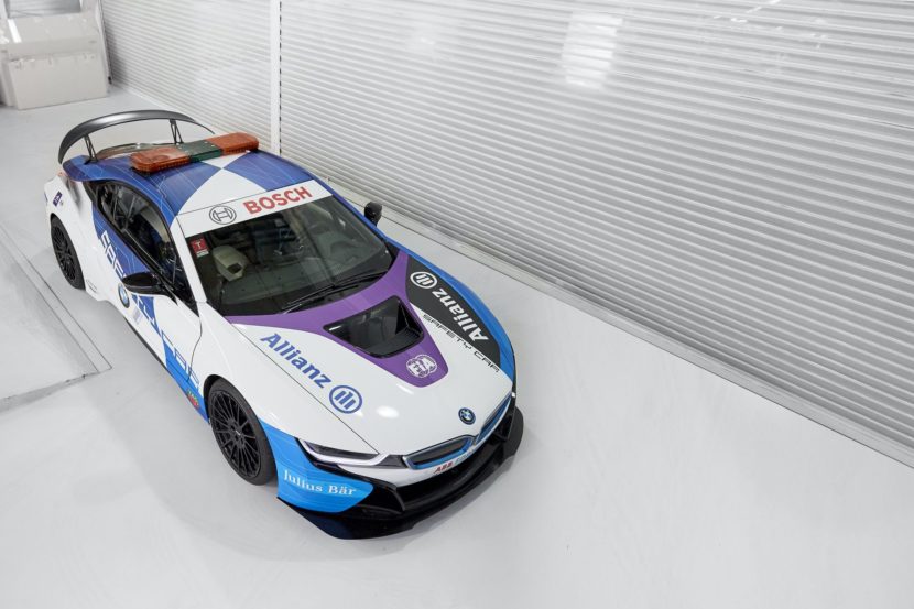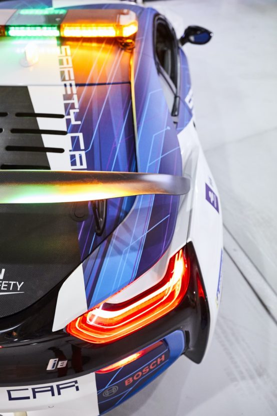 “We have translated the themes found in the design of the BMW iFE.18 to the very different proportions of the BMW i8 Coupe. This livery gives the Safety Car a new dynamism and a bold level of expression appropriate to racing in the streets,” said Scully.