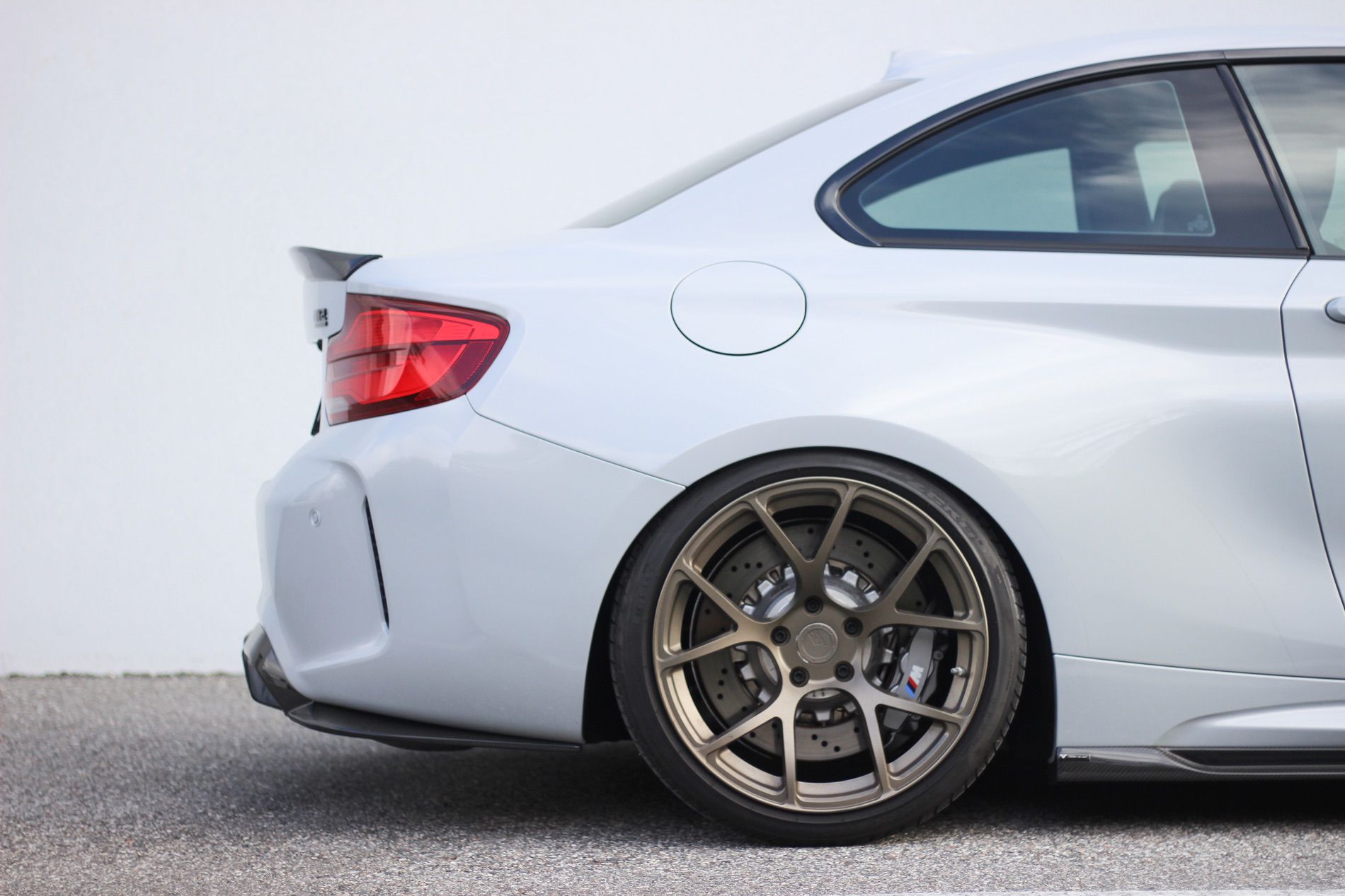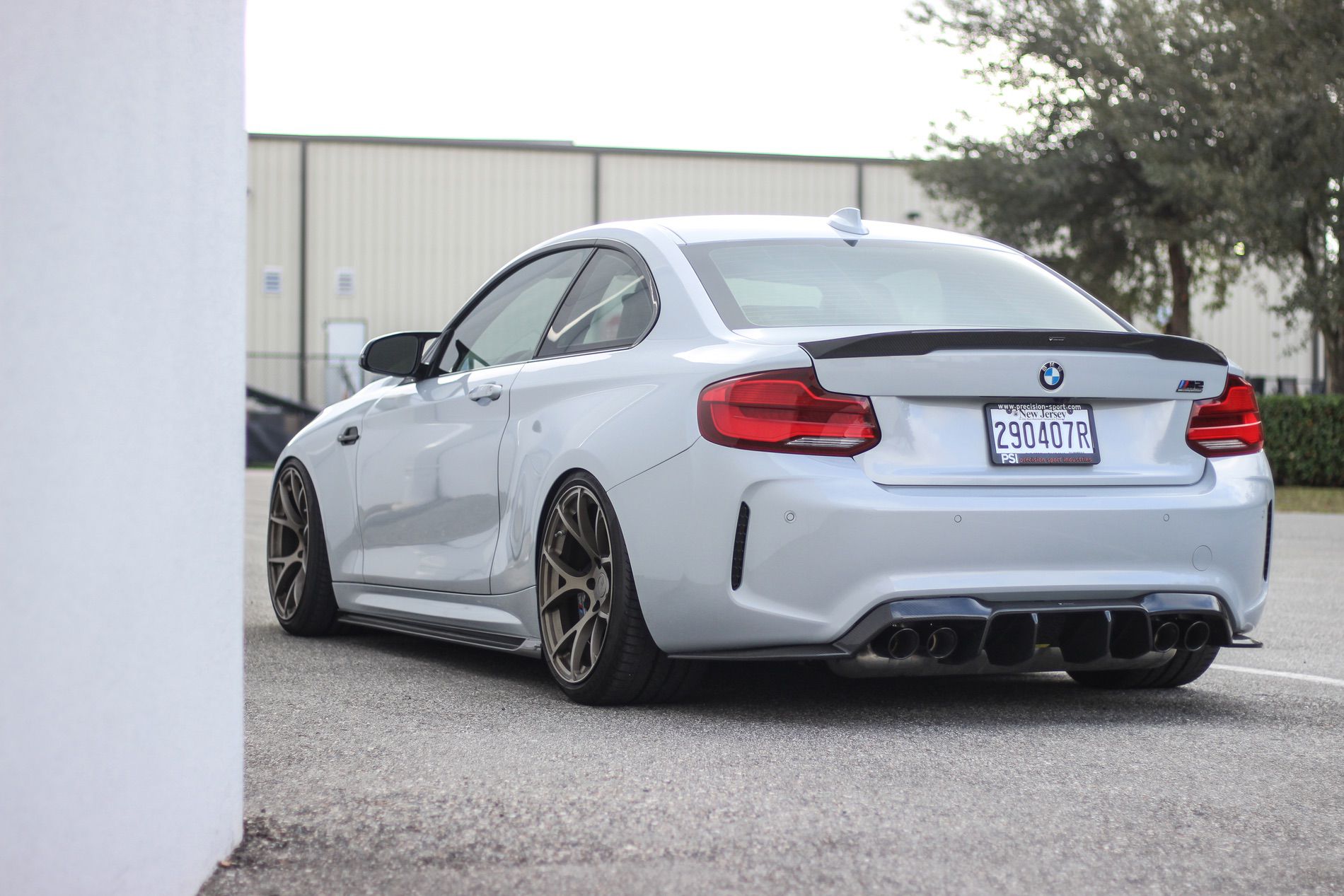 Next, PSI teamed up with the guys at BC Racing and BC Forged to get her some new suspension and wheels. They are running BC Racing’s BR Coilovers with BC Forged’s 19″ RS41’s in a Matte Bronze finish. The Matte Bronze finish is the perfect compliment for the Hockenheim Silver paint. The RS41 style is the perfect fit to show off those beautiful brakes that the M2C offers.