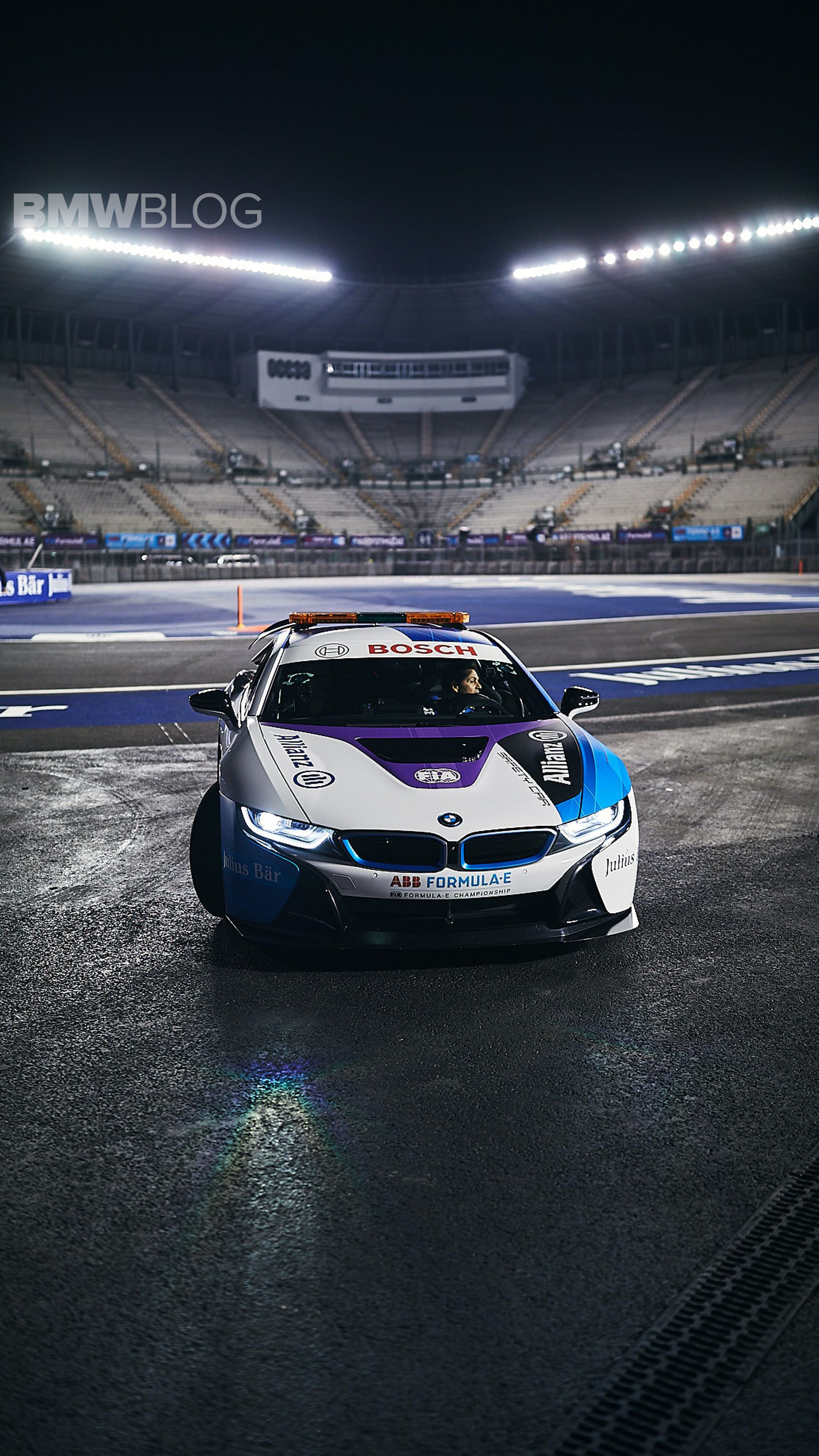 For the race in Mexico, the i8 Safety Car went through one more change. The car now features a new livery with a connective graphic network of blue and purple ‘veins’ carrying the natural colors of raw electricity.
