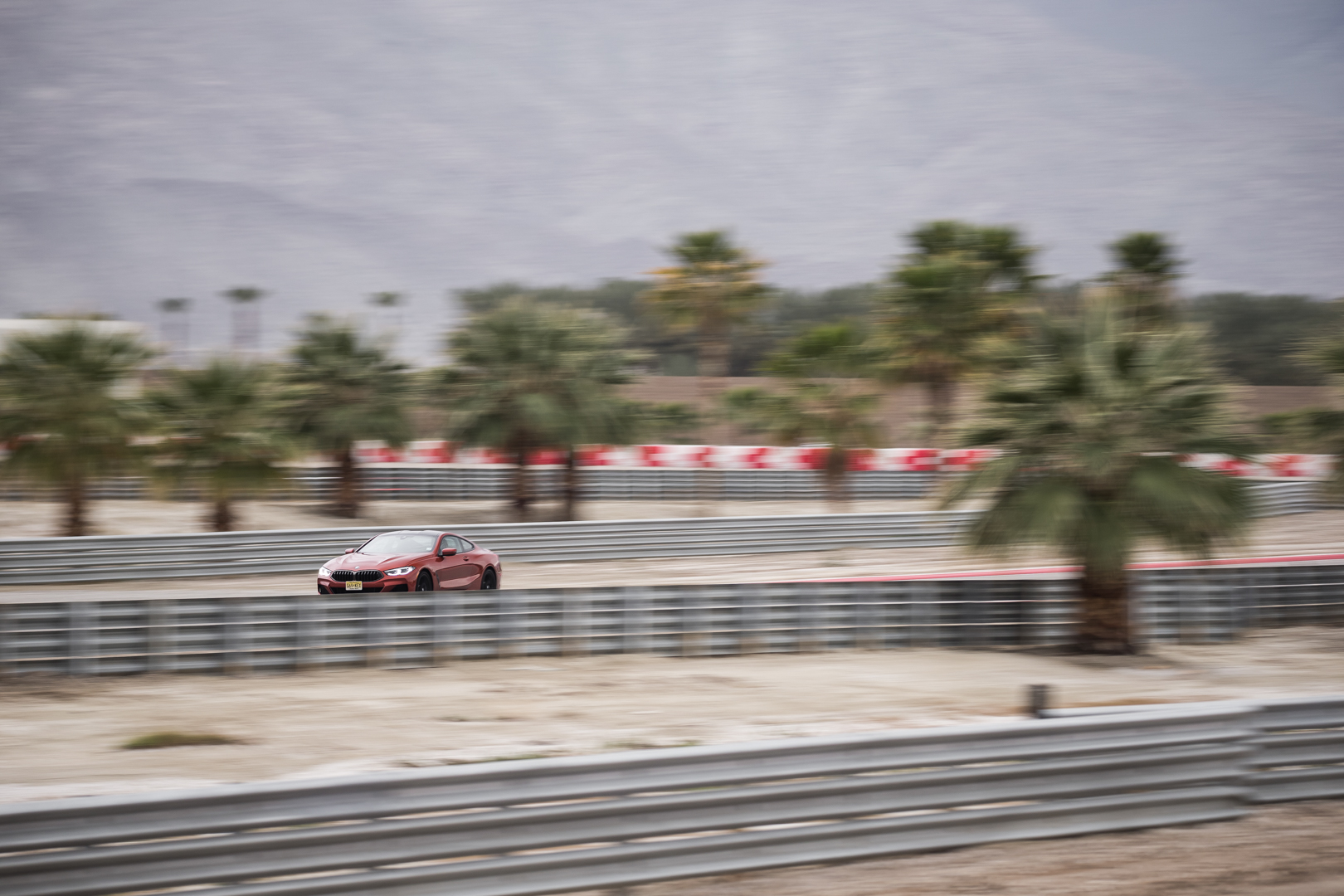 The instructor ahead of me signaled it was time to head out onto the track, so I followed behind and we waited at the back straight for another convoy of cars to pass and put some distance between us. I was a bit nervous, it must be said, as it was the first time I was driving the BMW M850i. It was also my first run of the day, so it was my first time at Thermal in a year and I still needed to be reacquainted with the track.